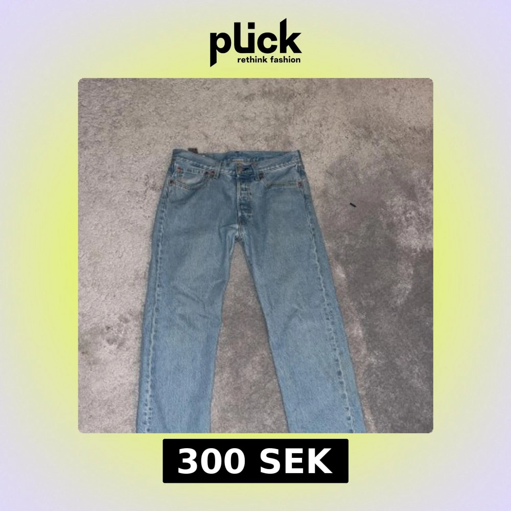 Säljer ett par klassiska Levi's 501 jeans i ljusblå tvätt. Modellen har rak passform, fem fickor och knappgylf. Jeansen har den ikoniska läderpatchen bak och röda Levi's-tag vid bakfickan. Perfekt för dig som gillar tidlös denimstil.