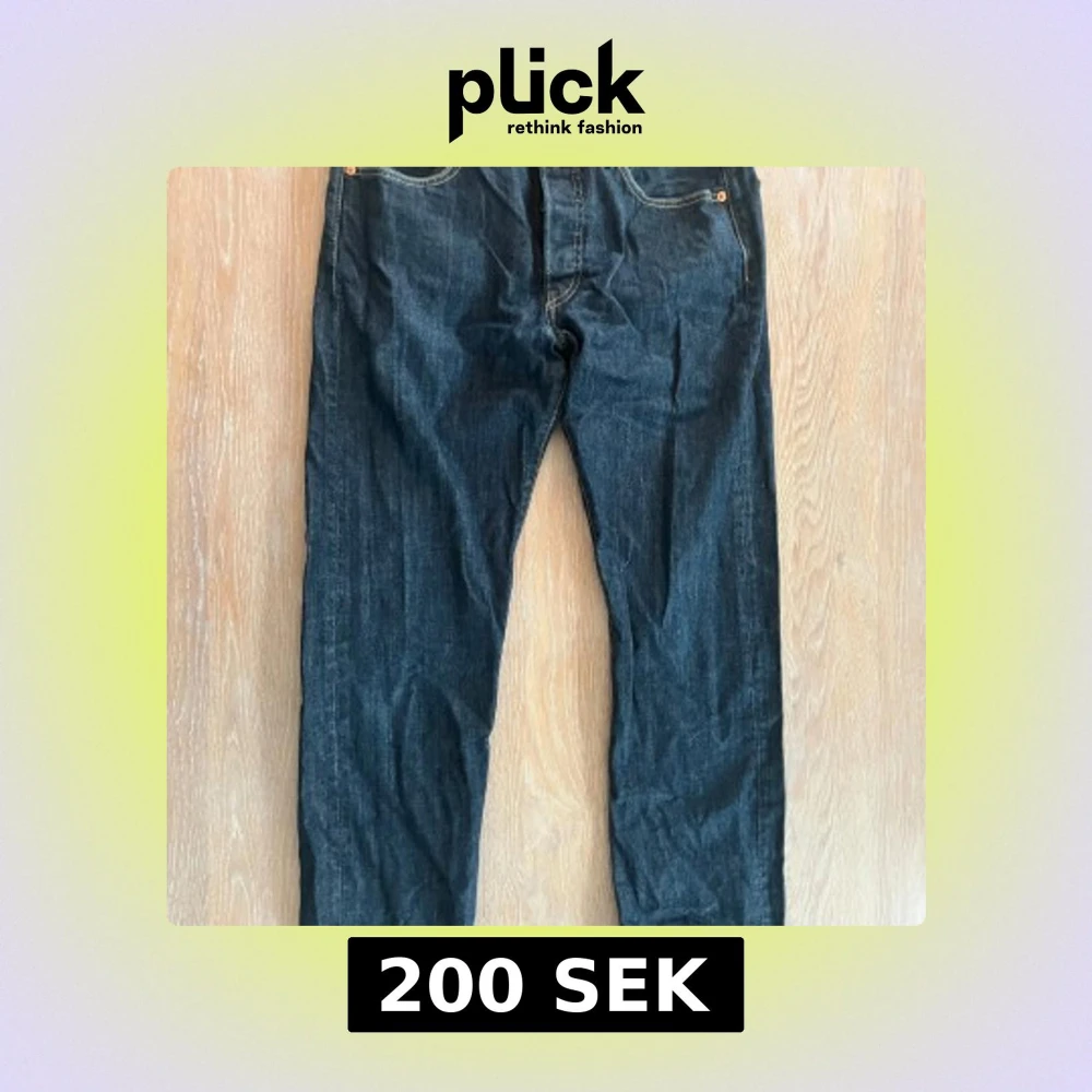 Klassiska Levi's 501 jeans i mörkblå denim med raka ben och femficksmodell. Byxorna har knappgylf och kontrastsömmar, perfekt för en tidlös stil. Ikonisk läderpatch bak i midjan.