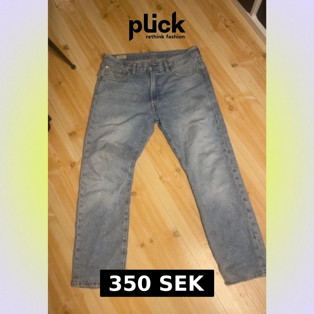Ljusblå Levi's 551 jeans med klassisk straight fit och fem fickor. Jeansen har en snygg tvättad look och ett litet slitet hål på bakfickan för extra karaktär. Perfekt för dig som gillar vintage-vibe och tidlös denimstil.