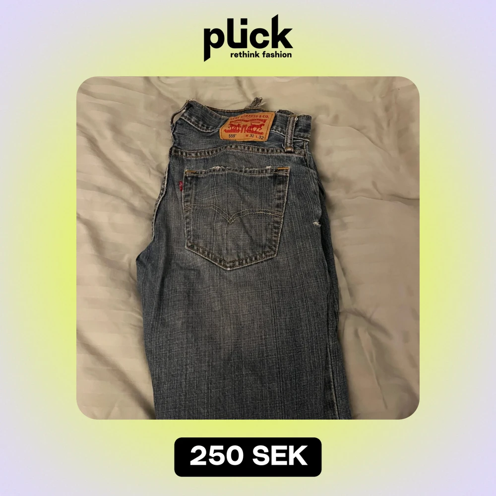 Säljer ett par klassiska Levi's 559 jeans i blå denim. De har en straight passform och är i bra skick. Perfekta för både vardag och avslappnade tillfällen. Jeansens tidlösa design gör dem till ett måste i garderoben!