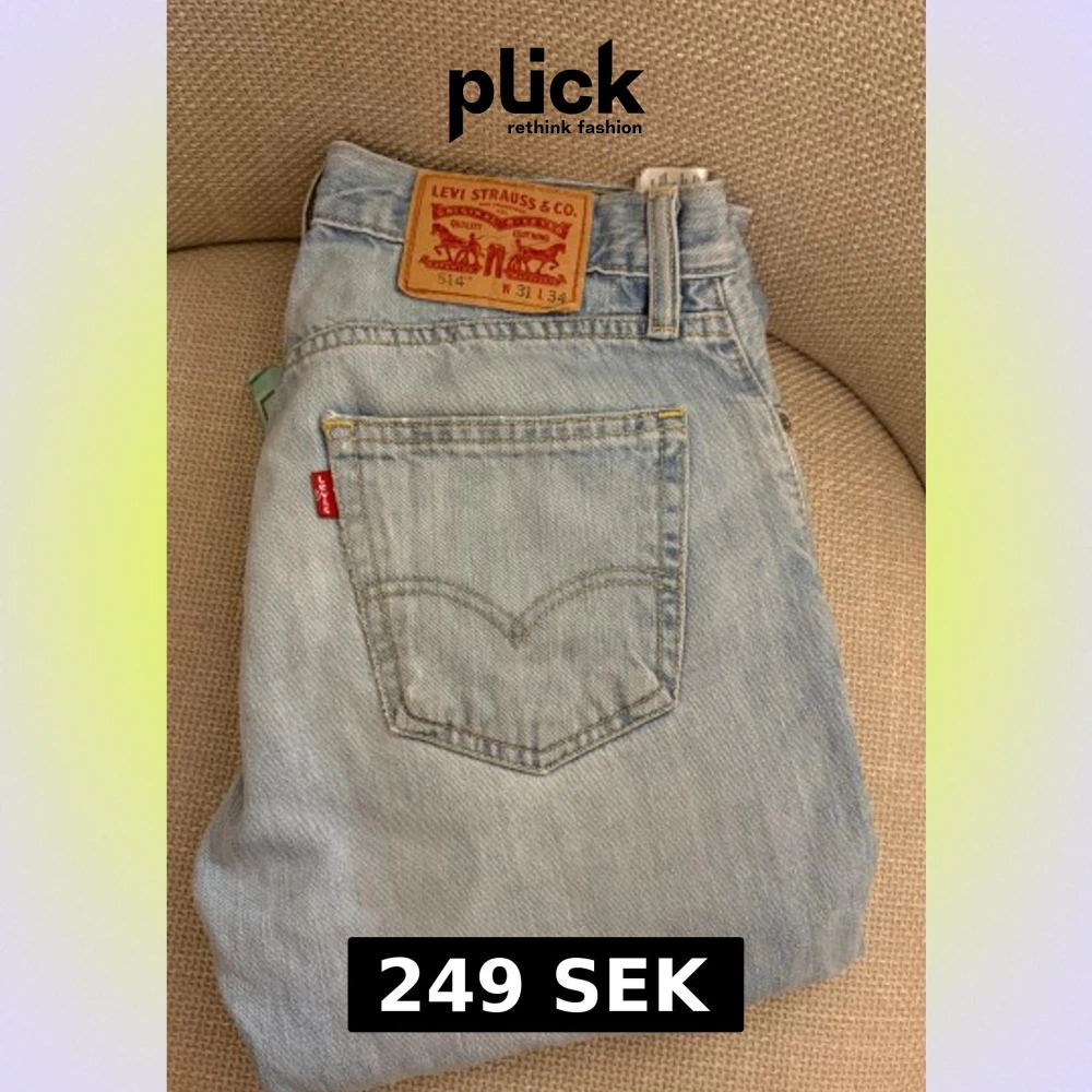 Säljer ett par Levi's 514 jeans i ljusblå tvätt med klassisk femficksdesign och raka ben. Jeansen har normal passform, Bara att höra av er vid frågor eller funderingar!😊