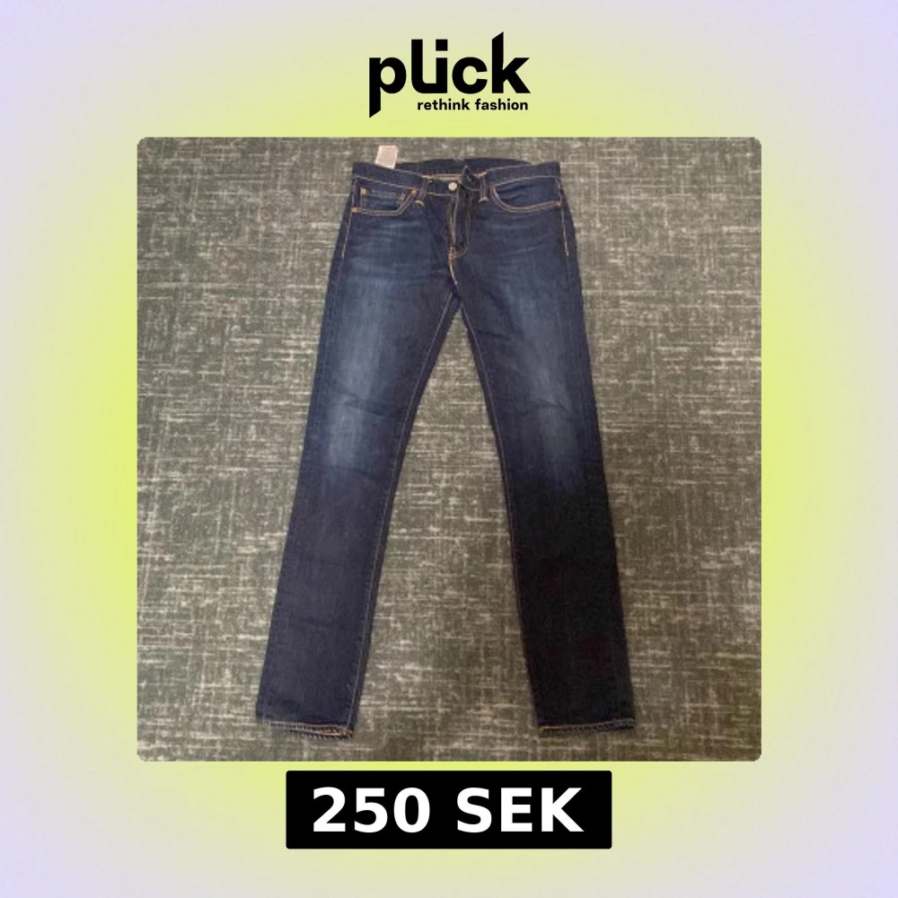 Säljer ett par Levis 511 jeans i mörkblå denim. Dessa jeans har en slim passform och klassisk femficksdesign.