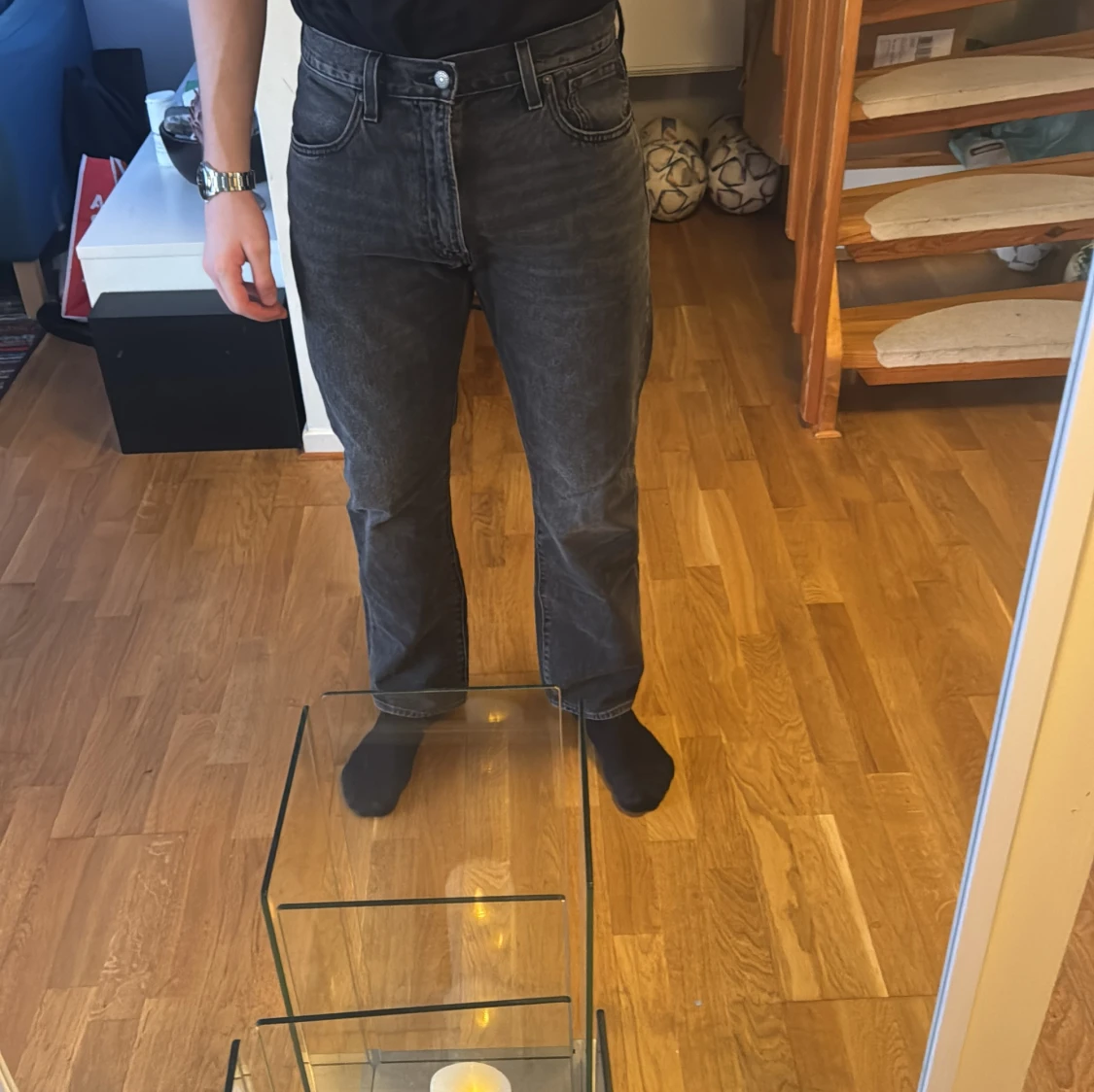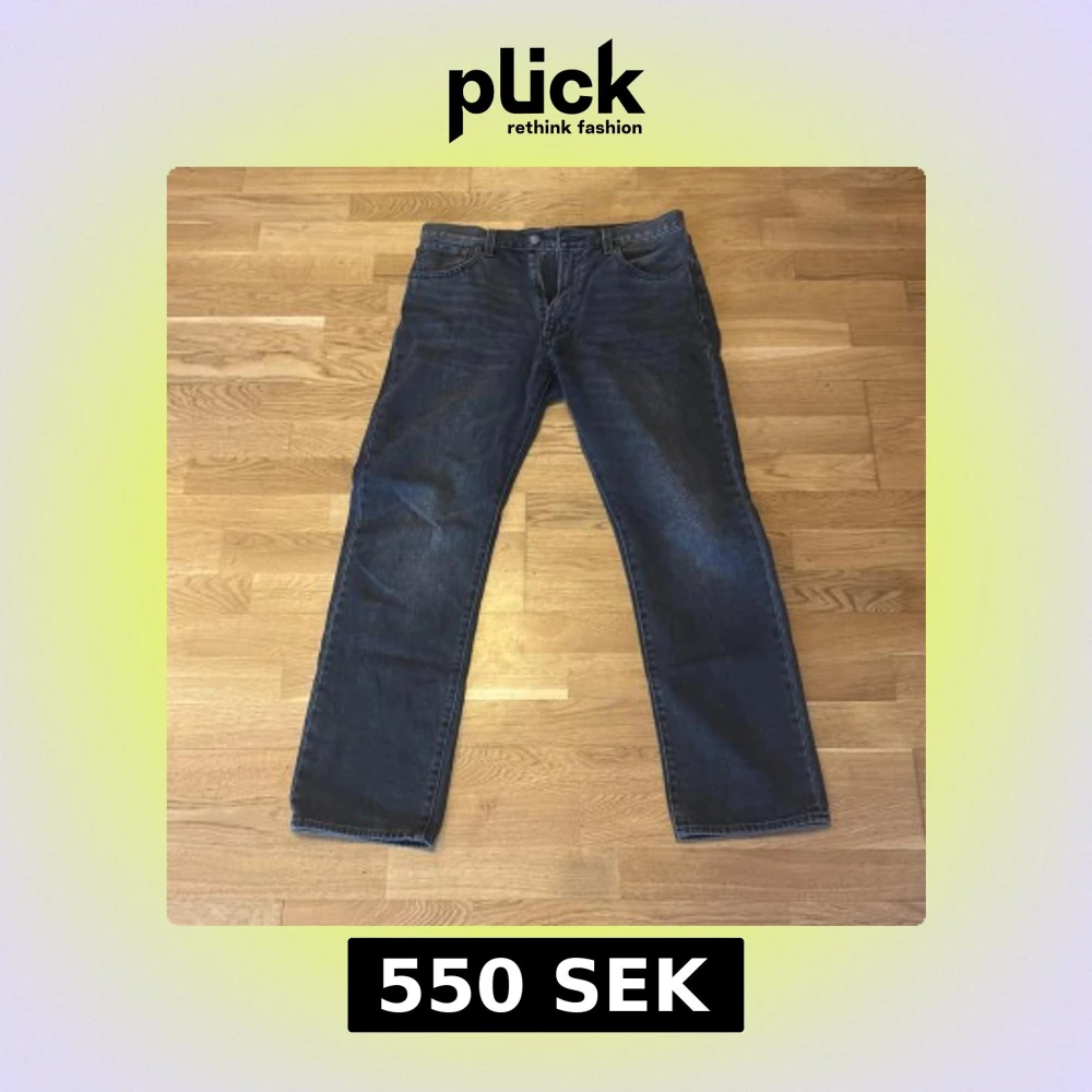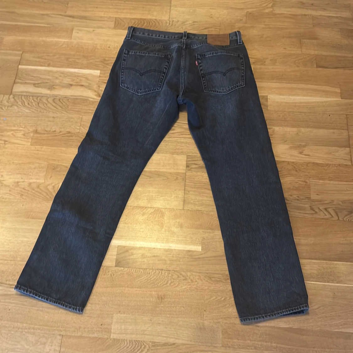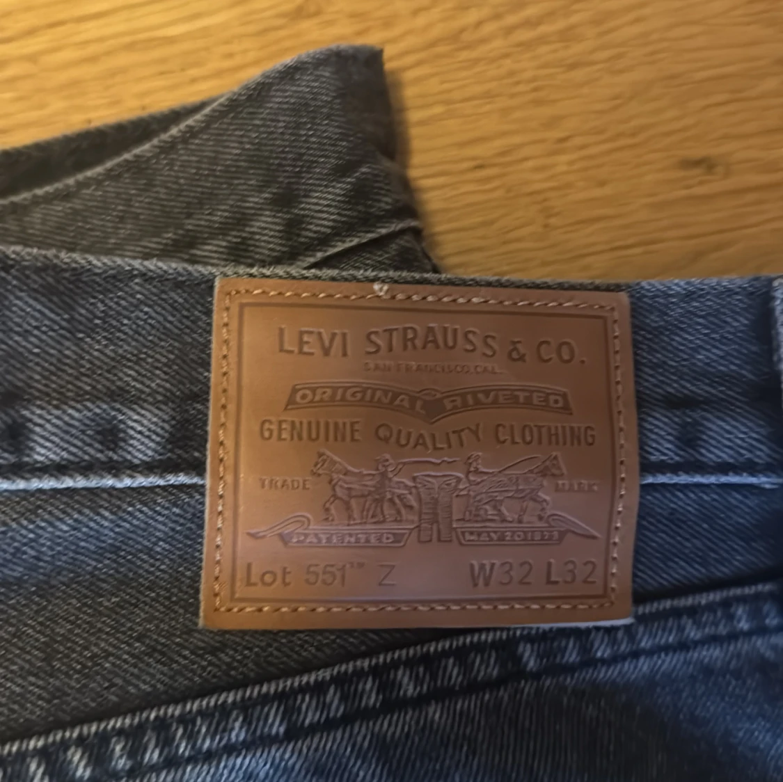 Säljer ett par klassiska Levi's 551 Z jeans i mörkgrå denim. De har en rak passform och är perfekta för en avslappnad stil. Framstår som nya. Nypris ca 1600 kr