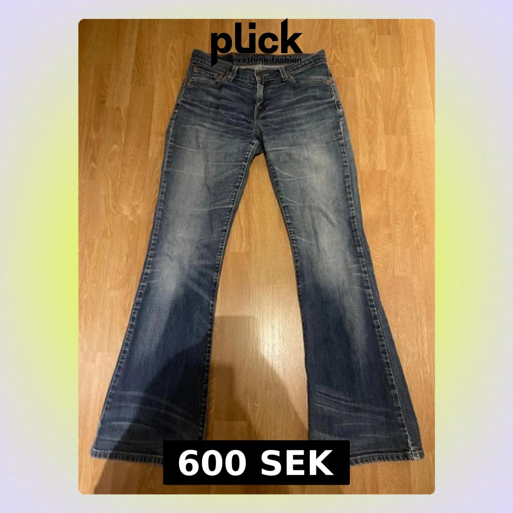 Säljer ett par Levi's 529 jeans i klassisk blå tvätt med snygga slitningar. Modellen är bootcut. Storleken är 29x32