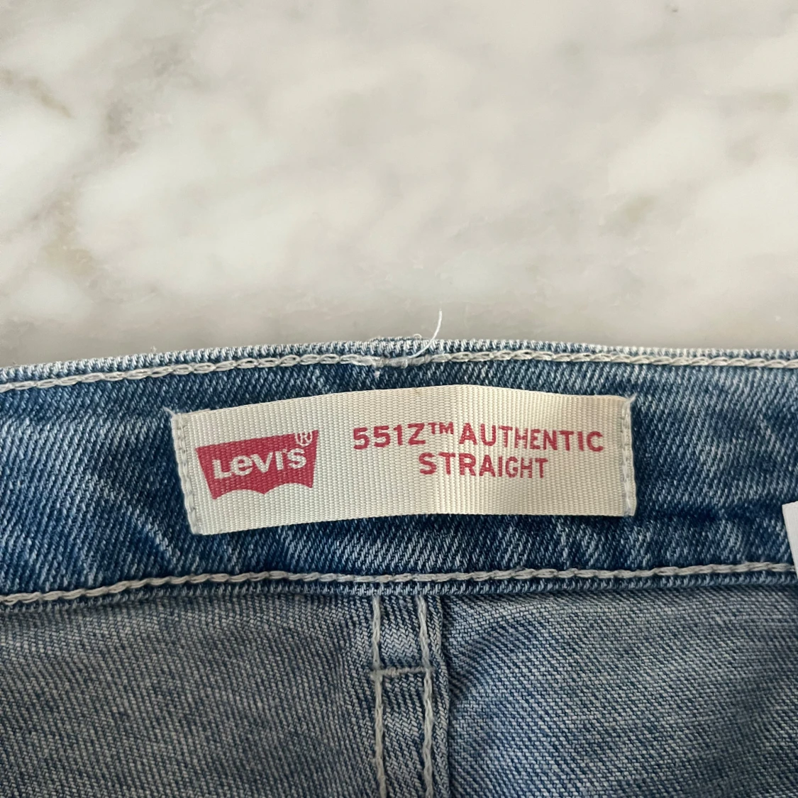 Ljusblå raka jeans från Levi's, modell 551Z Authentic Straight. Klassisk femficksdesign med dragkedja och knapp framtill. Jeansen har en avslappnad passform och är tillverkade i denim. Perfekta för en avslappnad stil.