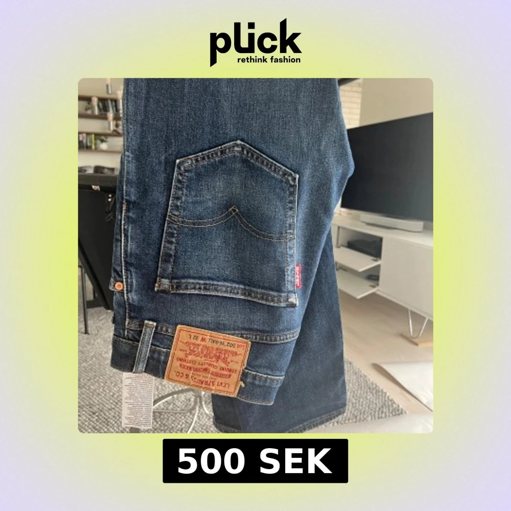 Säljer ett par klassiska Levi's 502 jeans i mörkblå tvätt med snyggt slitna detaljer. Jeansen har raka ben, med en vintage look