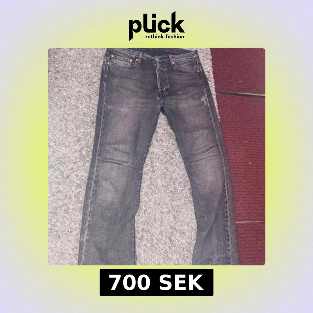 Snygga grå Levis 501 jeans med klassisk design. De har en rak passform och är perfekta för en avslappnad stil. Jeansen har fem fickor och knappar i gylfen.