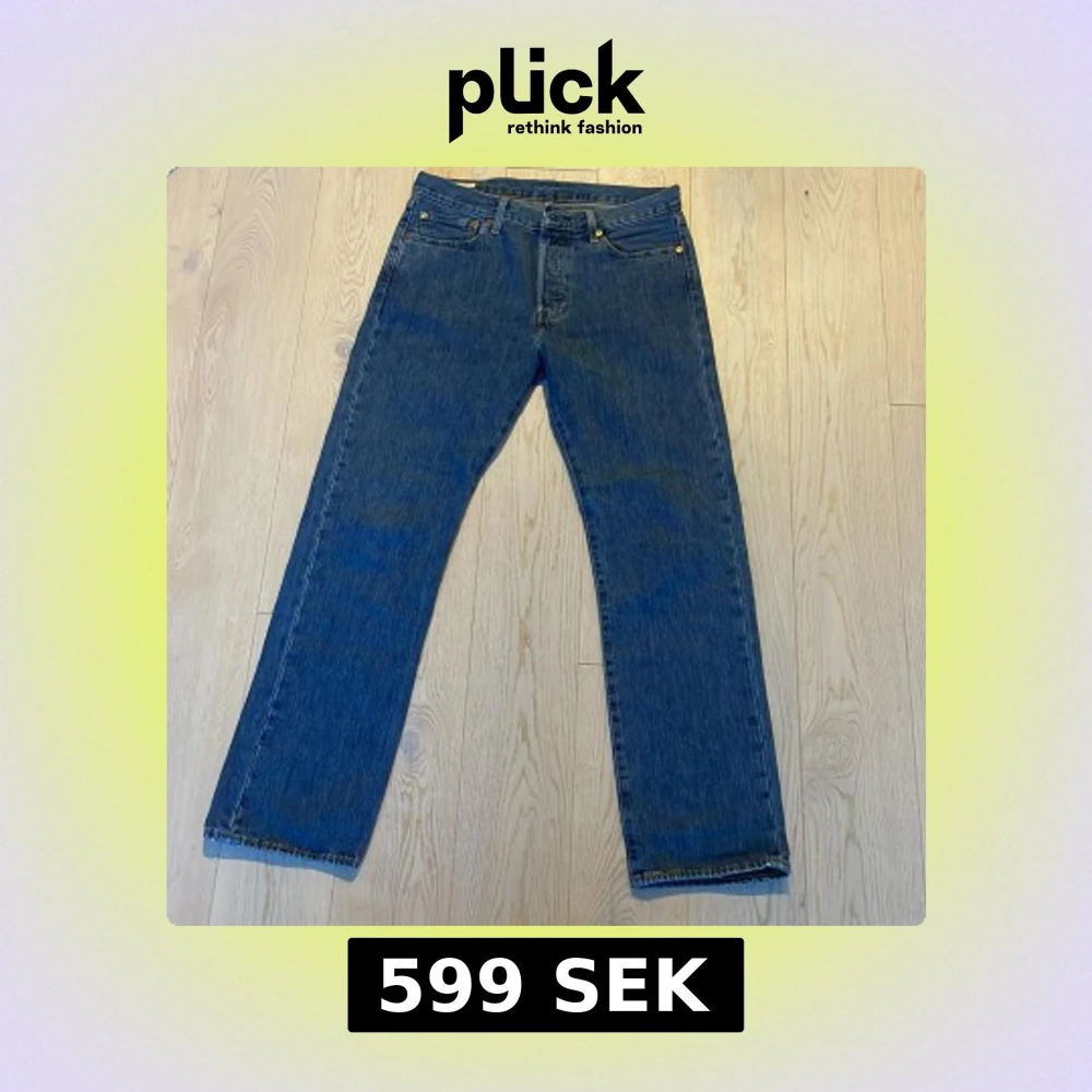 Säljer ett par klassiska blå Levis 501 jeans. De har en rak passform och är tillverkade i slitstarkt denim. Helt nya, aldrig använt.