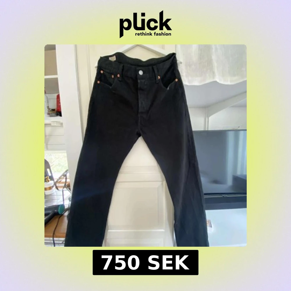 Klassiska svarta Levi's 501 jeans med raka ben och knappgylf. Byxorna har fem fickor och den ikoniska läderpatchen bak i midjan. Perfekta för dig som gillar tidlös stil och vill ha ett par jeans som funkar till allt.