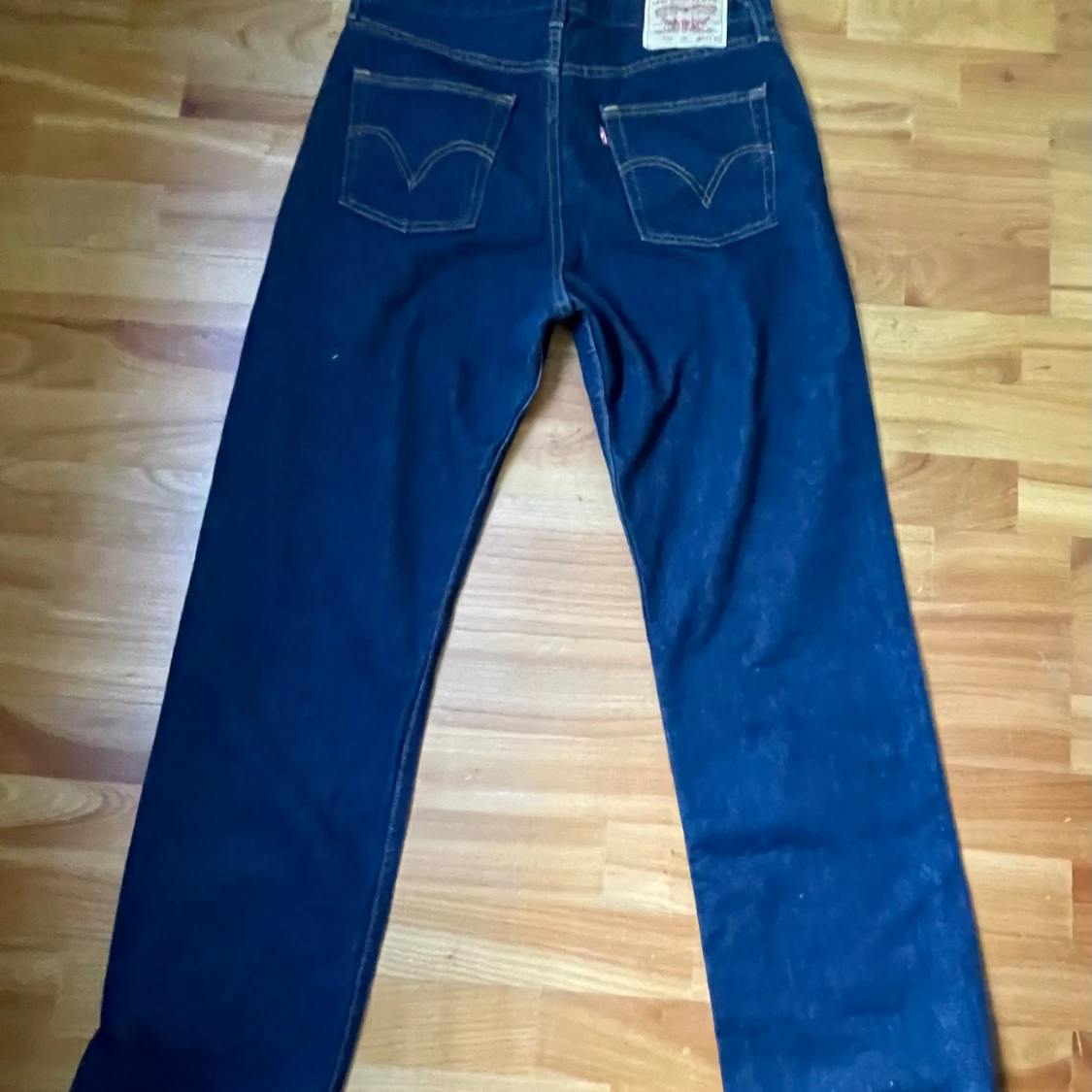 Klassiska mörkblå jeans från Levi's i rak modell. Jeansen har fyra fickor, tydliga kontrastsömmar och patch bak i midjan. Tillverkade i slitstarkt denimtyg, perfekta för en avslappnad och tidlös stil.