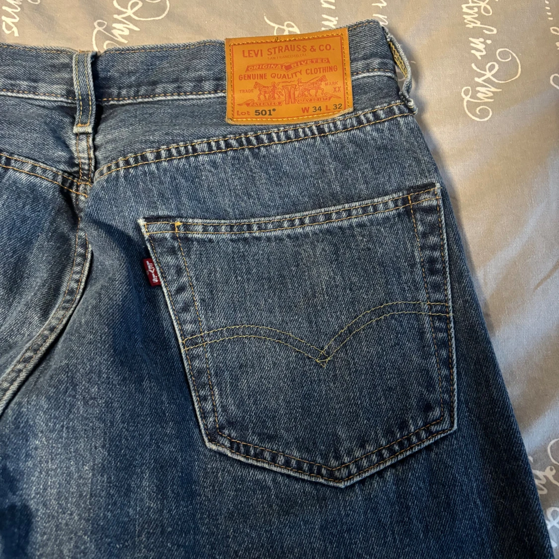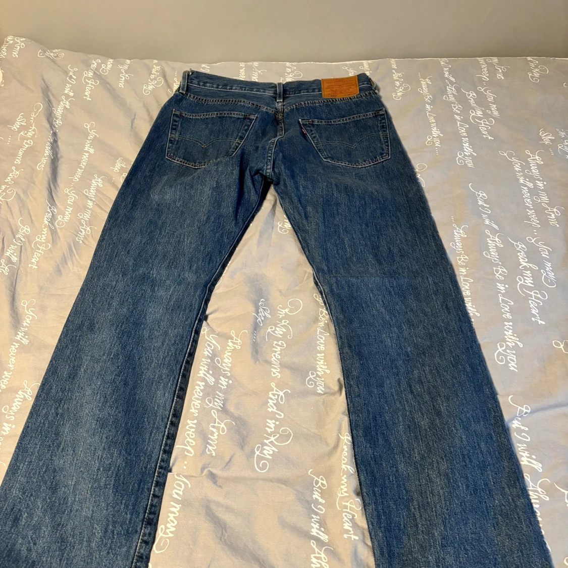 Klassiska Levi's 501 jeans i blå denim med raka ben och normal passform. Snygga kontrastsömmar, fem fickor och ikonisk läderpatch bak. Perfekta för dig som gillar tidlös stil och vill ha ett par jeans som alltid funkar.