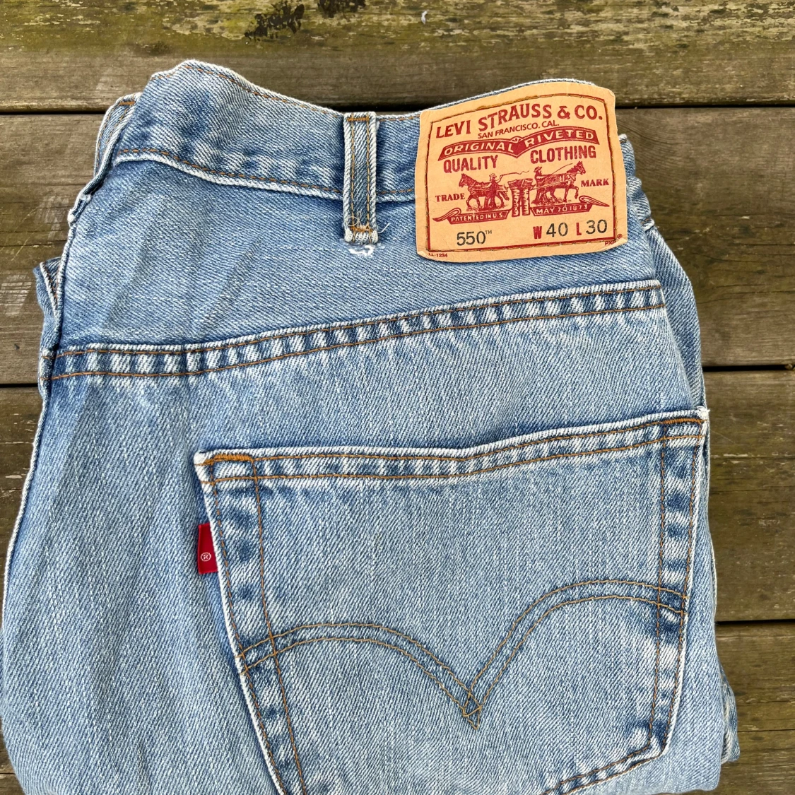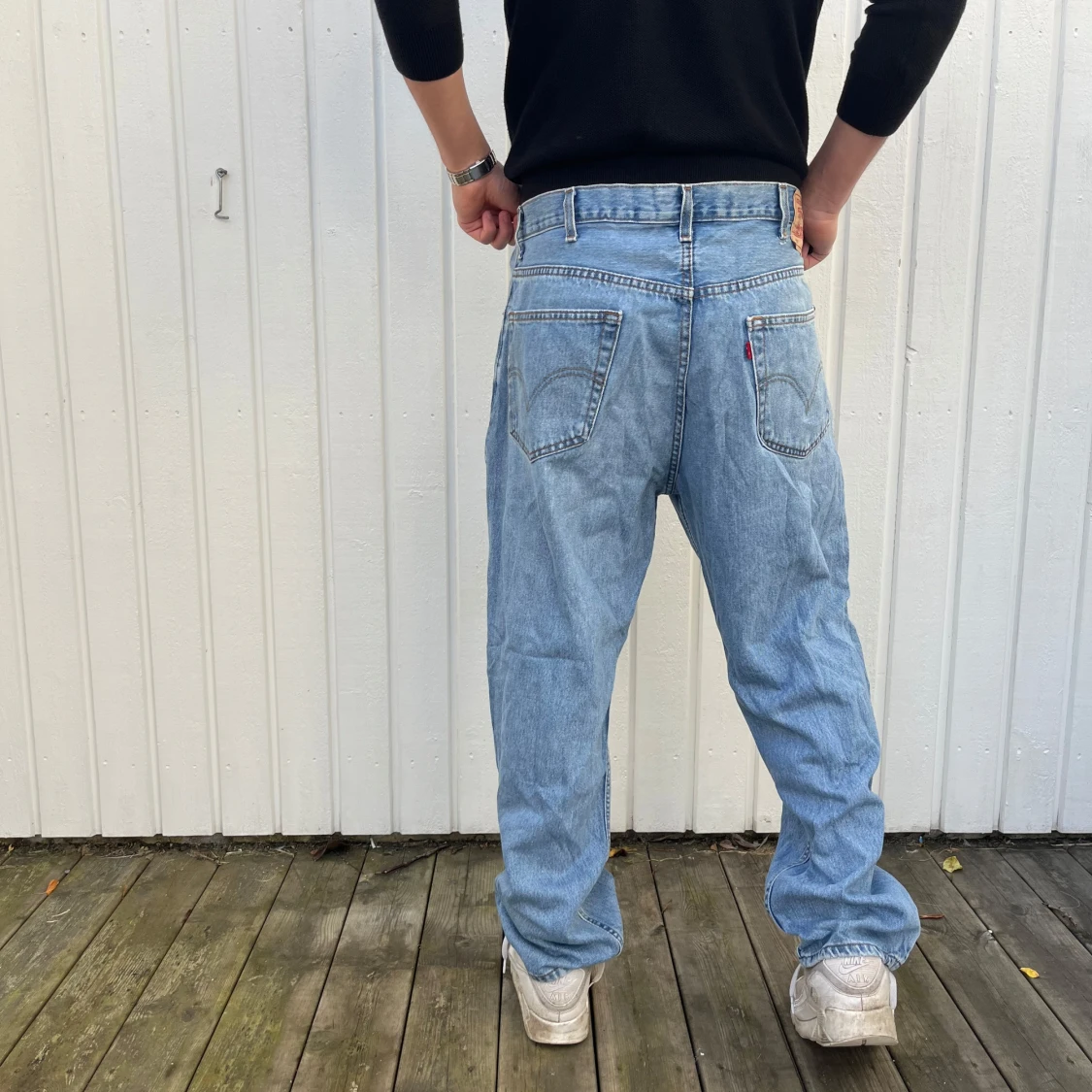Säljer ett par klassiska Levi's 550 jeans i ljusblå denim. De har en loose fit och är perfekta för en avslappnad stil. Jeansen är i bra skick och har den ikoniska Levi's-lappen på baksidan. Perfekta för både vardag och chillhäng! 🕶️