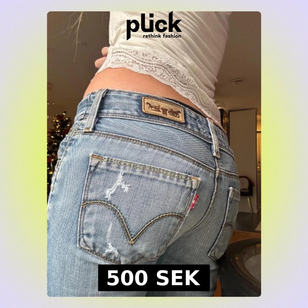 Säljer mina favorit jeans från Levis 527 i ljusblå tvätt med klassiska detaljer och slitningar, då det inte passar mig längre. Modellen har låg midja och bootcut-ben, vilket ger en snygg siluett. Jeansen är gjorda i mjukt bomullsmaterial och har Levis ikoniska patch och röda etikett på bakfickan.