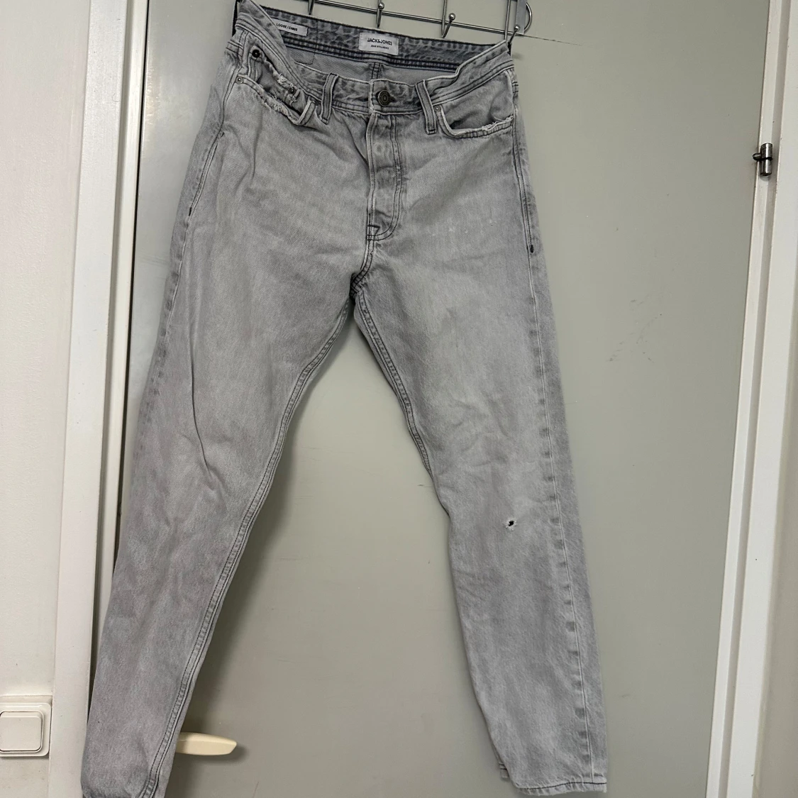 Ljusgrå jeansbyxor från Levis med klassisk femficksdesign och raka ben. Byxorna har Levis-logga på bakfickan och läderpatch i midjan. Perfekta för en avslappnad stil.