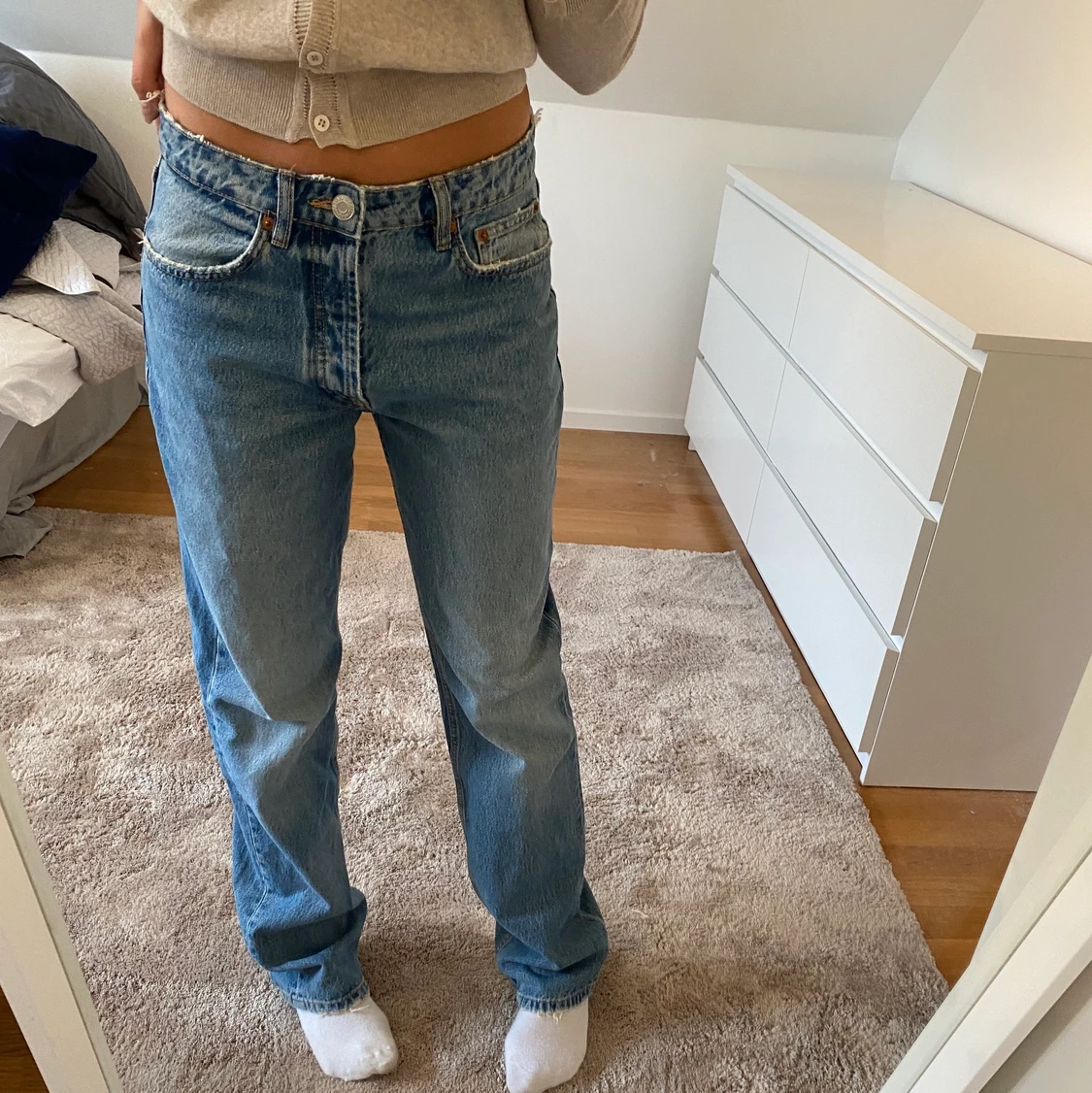 Snyggaste baggyjeans från zara, använda endats 1 gång, stolek 38, sitter på mig som på bilden jag är 170 och har vanligtvis stl 36, köparen står för frakt