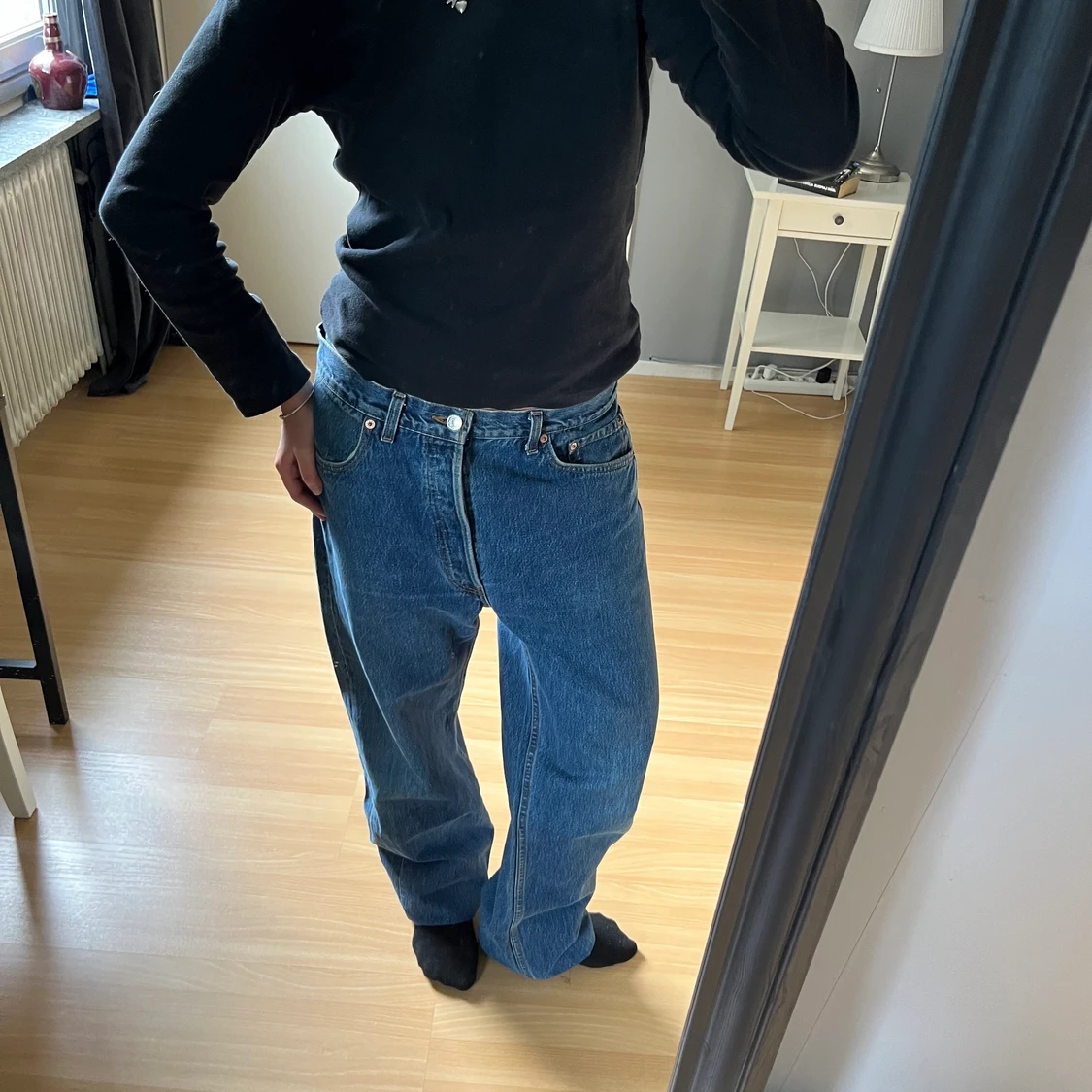 Skitnsnygga mörkblå 501 levis men är för stora och långa för mig, är 170 cm och har M i det mesta.