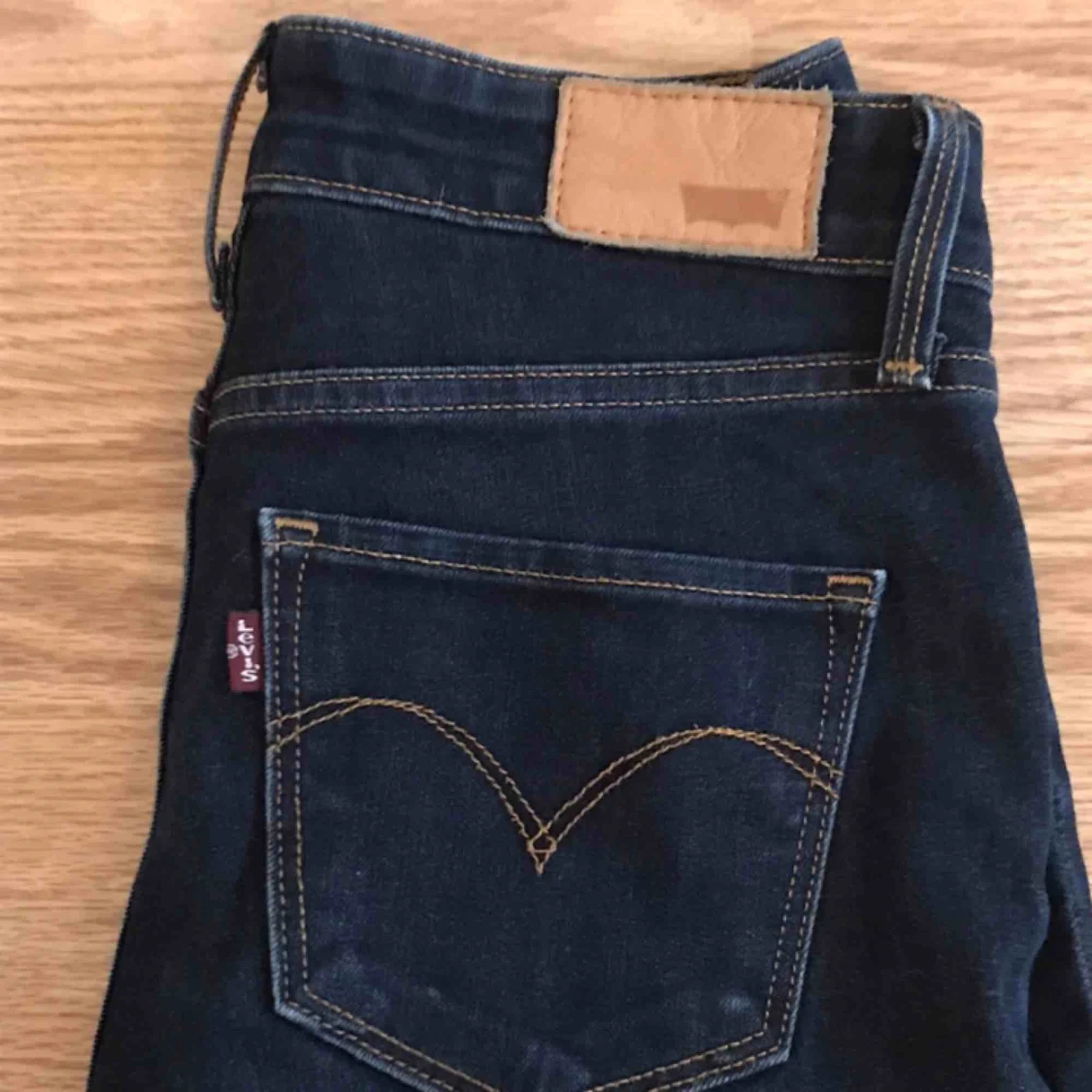 Snygga Levis skinnyjeans i mörkblå färg, knappt använda och i bra skick! Kan mötas upp i Uppsala eller så tillkommer frakt 💕