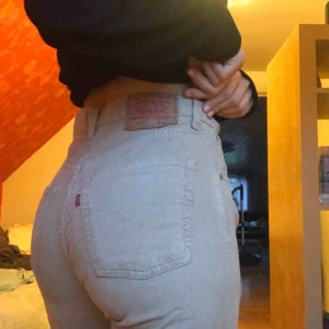 Världens finaste beiga Levis-jeans. Dom är i storlek W 32 L 32 och snyggt avklippa längst ner som ni ser på sista bilden.
