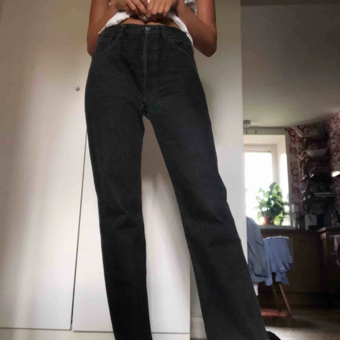 501 Levis vintage jeans köpta på beyond retro. I en washed out svart färg. Förstora för mig och avklippta så passar en 32 i längd.