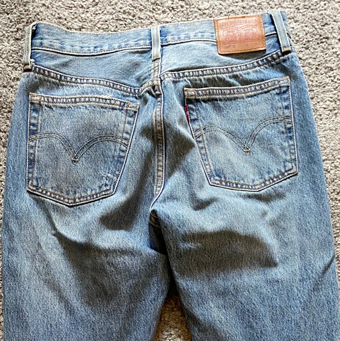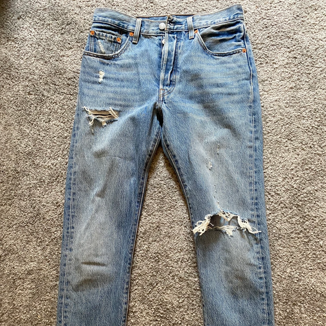 Blåa jeans från levi’s med slitningar. Gott skick!