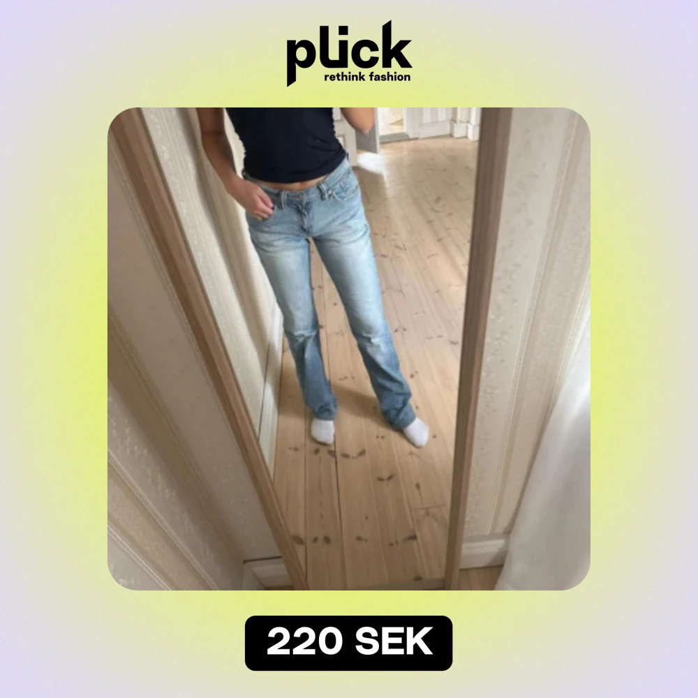 Bootcut jeans från Levis som är köpte vintage. Står inte vilken modell det är. Det är 98% bomull och 2% elastan, väldigt stretchiga. För referens så är jag 165cm lång och på mig är dom något för långa.