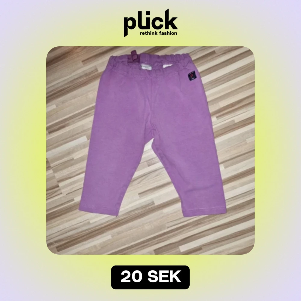 Ett par korta lila leggings från Polarn O. Pyret i storlek 122/128 månader. Byxorna har en elastisk midja för bekväm passform.