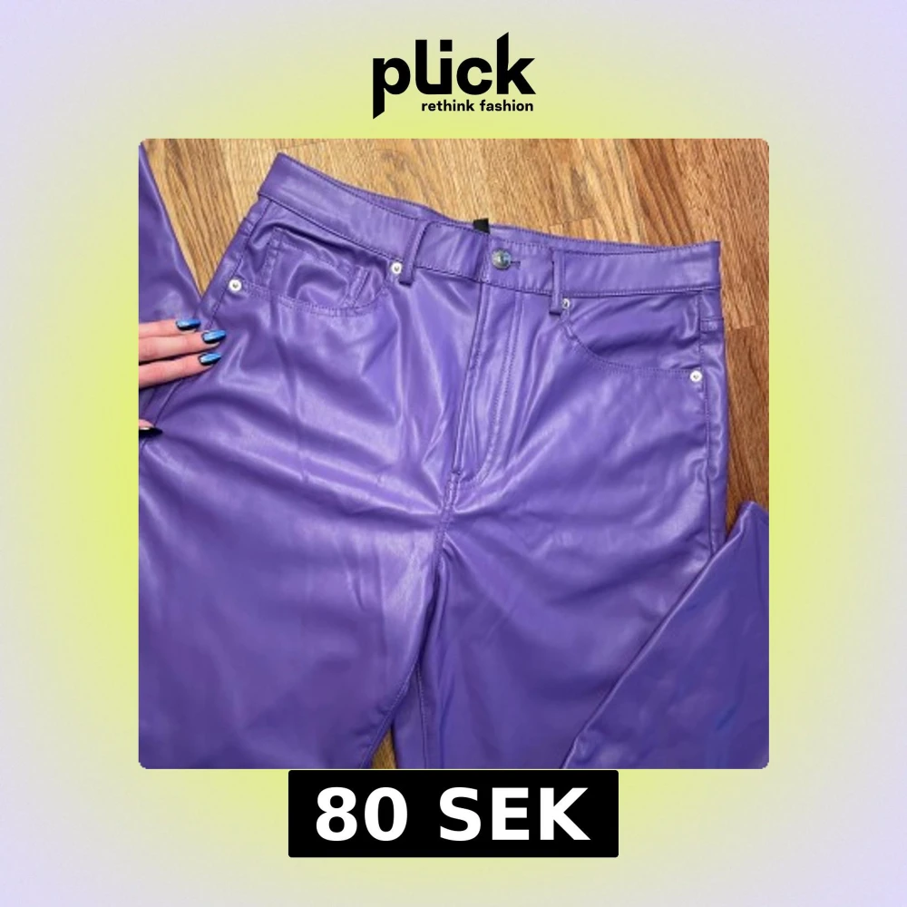 Snygga lila byxor i polyester (fakeläder) från H&M. Bara använd två gånger, storlek 40 i mycket bra skick! Perfekta för dig som vill sticka ut med färg!💜