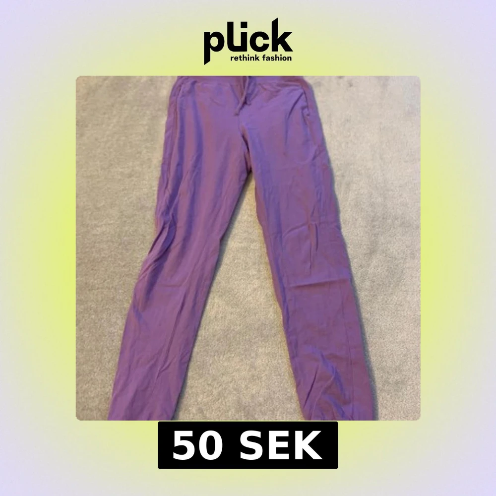 Säljer ett par lila mjukisbyxor med elastisk midja och muddar vid bensluten. Perfekta för en avslappnad stil.