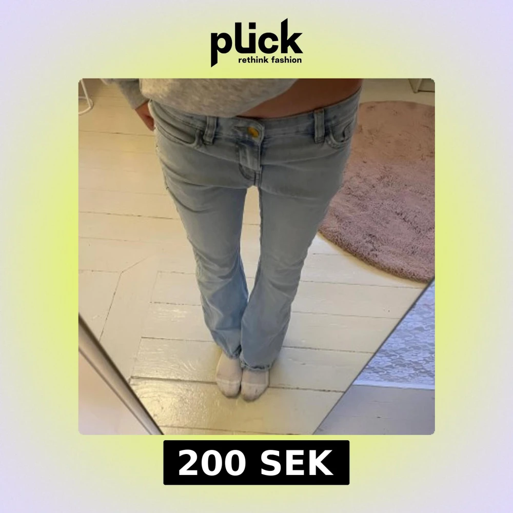 Snygga ljusblå jeans med bootcut och låg midja. Jeansen har klassiska fickor fram och bak, samt en guldfärgad knapp. Perfekta för dig som gillar en avslappnad och trendig look. Materialet är mjukt denim som sitter skönt hela dagen. Pris kan diskuteras! 🥰