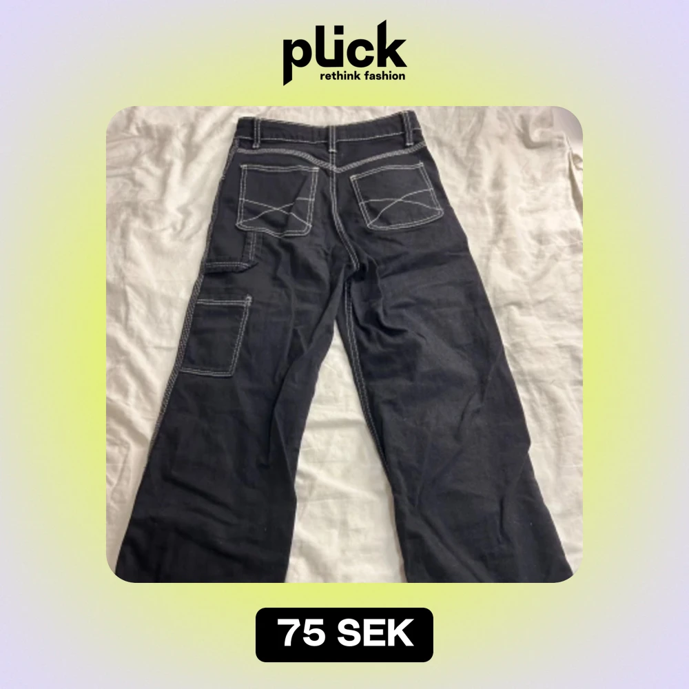 Svarta Jeans med tydliga sömmar som man ser på bilden, storlek 146 från Lindex