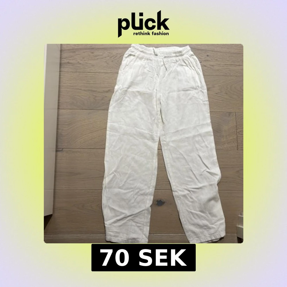 Snygga och luftiga vita linnebyxor från Lindex med resår i midjan och raka ben. Perfekta för varma dagar och chill vibes. Byxorna har sidfickor och är gjorda i ett mjukt linnematerial som känns skönt mot huden.