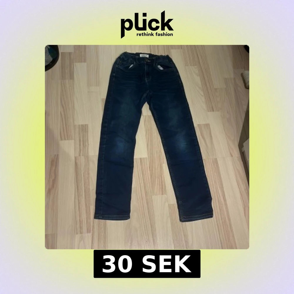 Snygga mörkblå jeansbyxor från Lindex med klassisk femficksdesign och resår i midjan. Jeansen har raka ben och subtila slitningar framtill för en cool look. Perfekta för dig som gillar enkel och stilren denim.