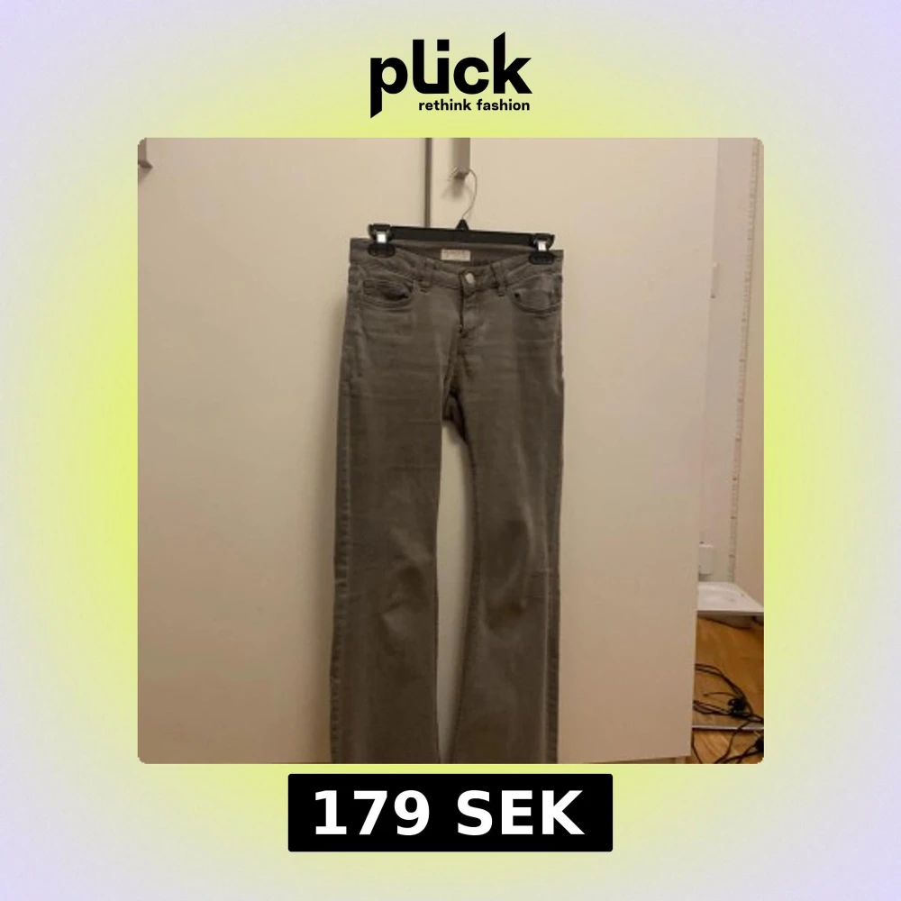 Säljer ett par gråa bootcut jeans med normal passform och klassisk femficksdesign. Jeansen har knapp och dragkedja framtill och är tillverkade i ett mjukt denimtyg. Perfekta för dig som gillar en tidlös och enkel stil.