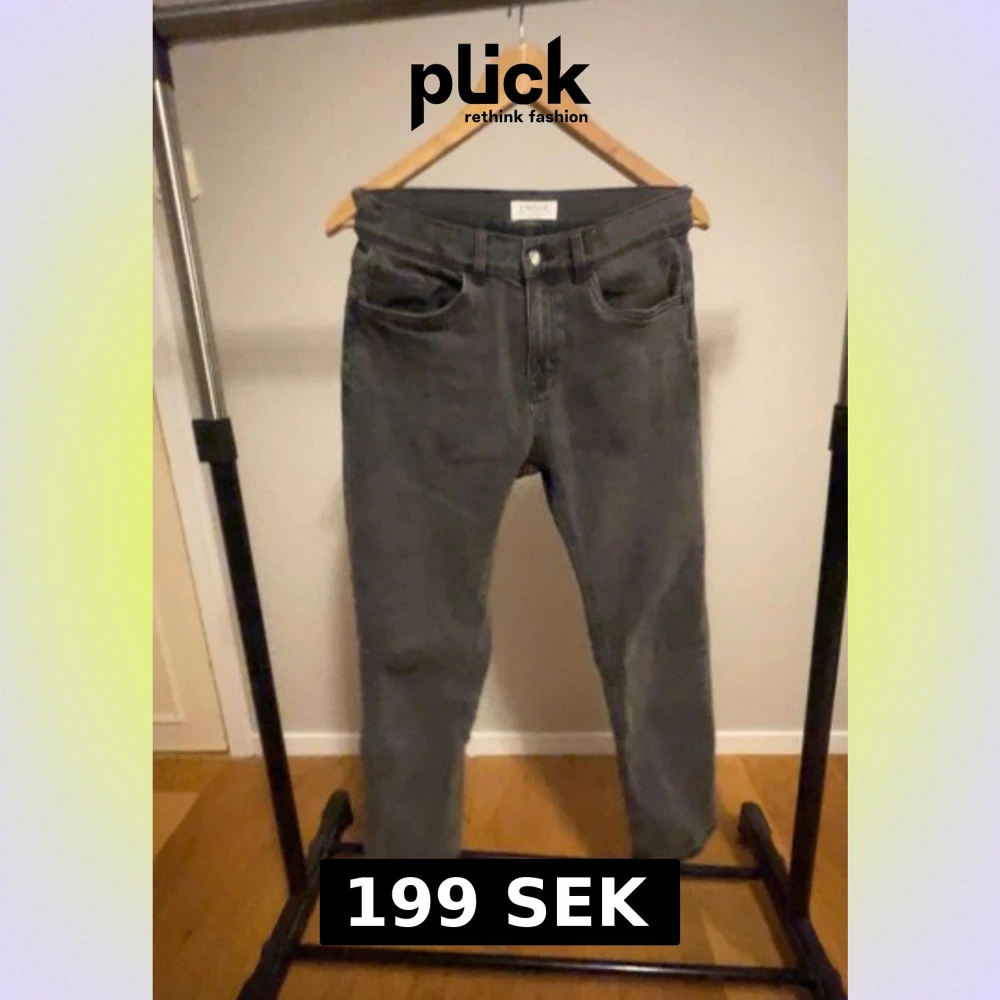 Snygga grå jeansbyxor från Lindex i klassisk femficksmodell. Byxorna har rak passform och normal midja, perfekta för en avslappnad stil. Tillverkade i mjukt bomullsmaterial med dragkedja och knapp framtill.