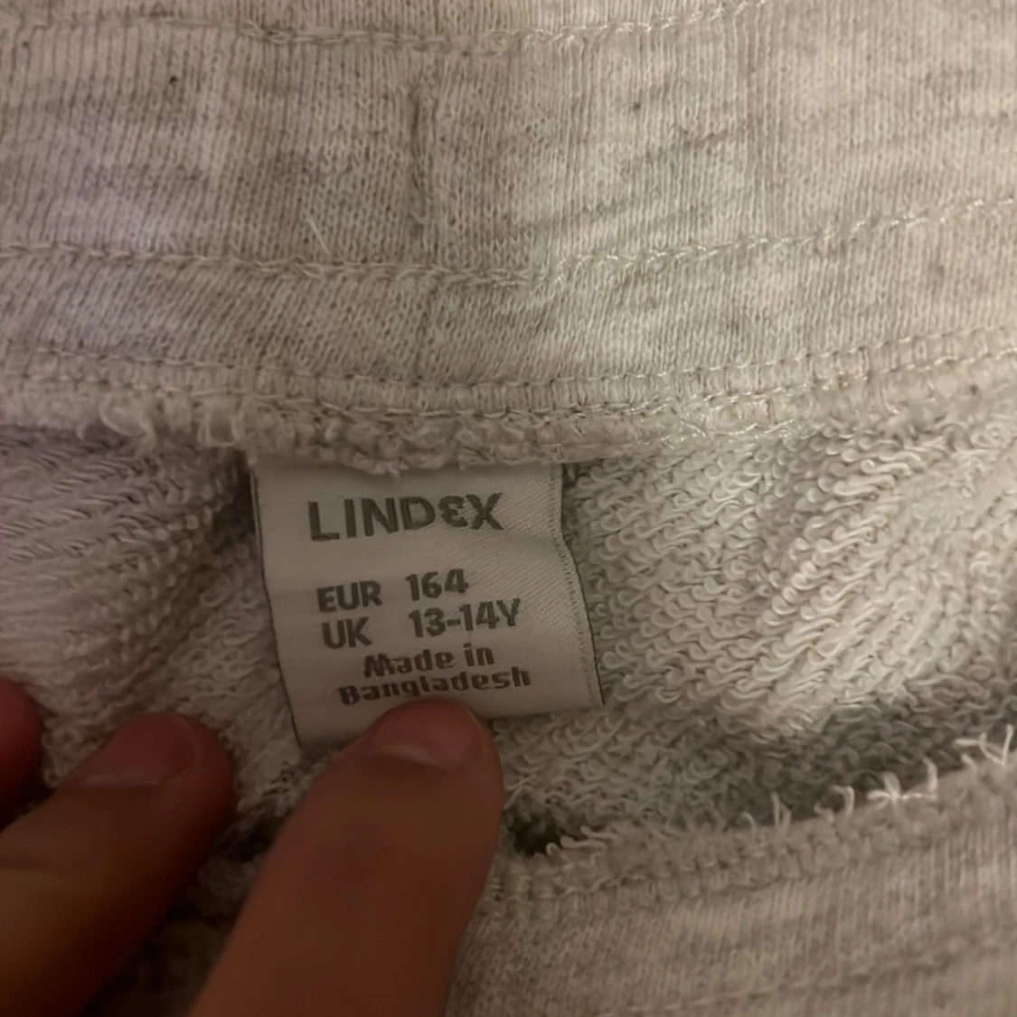 Ljusgrå mjukisbyxor från Lindex i storlek 164. Byxorna har resår i midjan med snörning och är tillverkade i mjukt material som passar perfekt för chill dagar. Klassisk och enkel design utan tryck eller mönster.