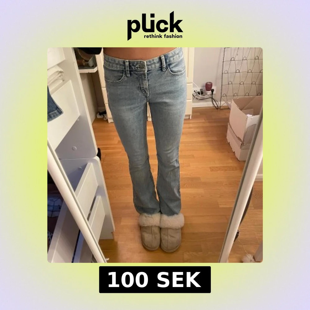Snygga ljusblå bootcut jeans med klassisk femficksdesign. De har en lågmidjad passform och är perfekta för en avslappnad stil. Jeansen har en dragkedja och knapp framtill.