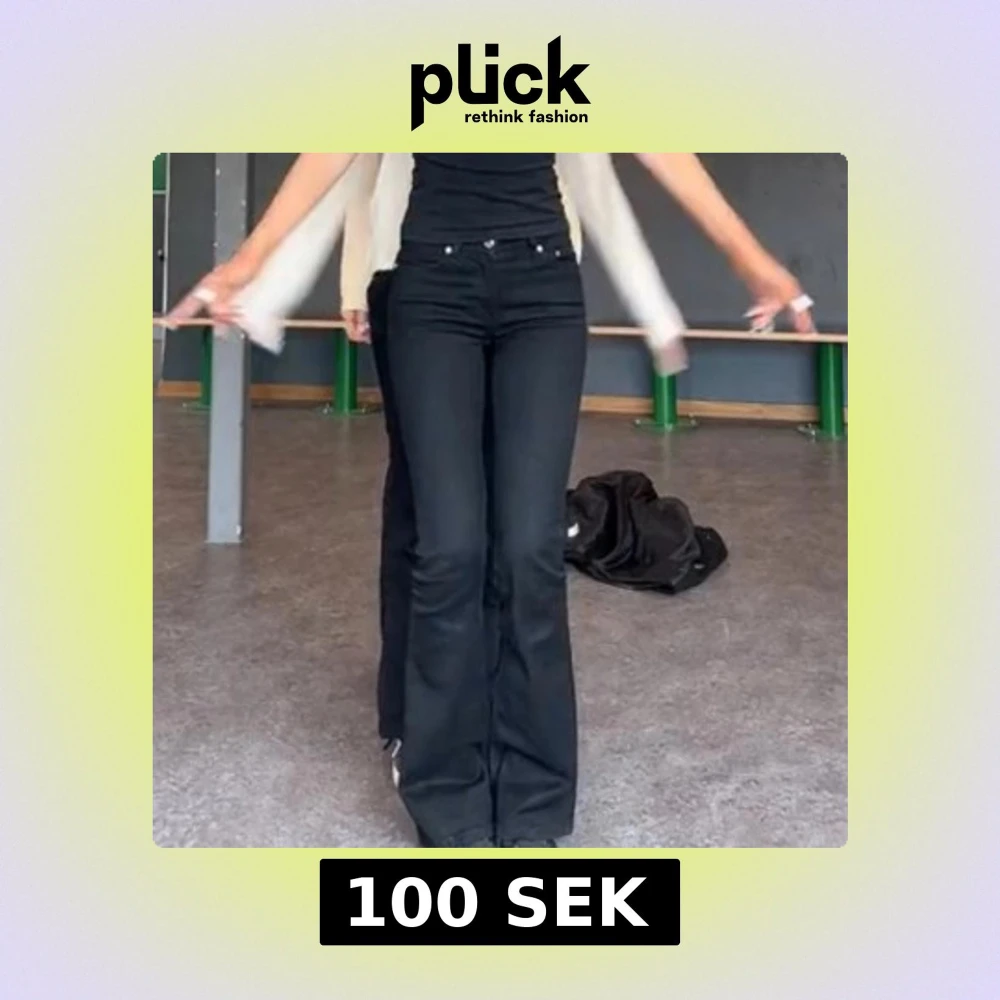 Säljer ett par svarta bootcut jeans med klassisk femficksdesign och knappgylf. Har sytt om dem så de är mer lågmidjade, därav priset.
