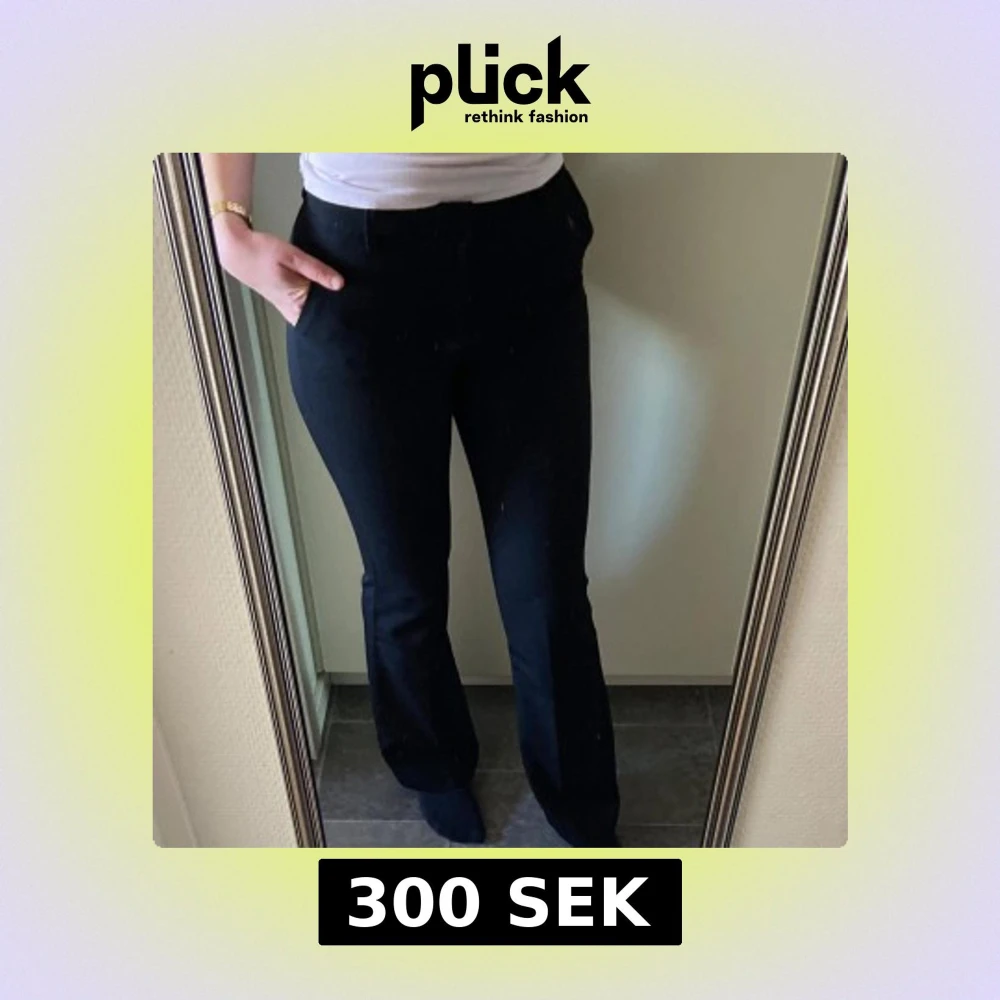 Snygga svarta kostymbyxor från Lindex med hög midja och bootcut. De är i storlek 36 och är i fint skick. Jag är 180cm för referens.🩷 Säljs för 300kr men priset kan diskuteras.