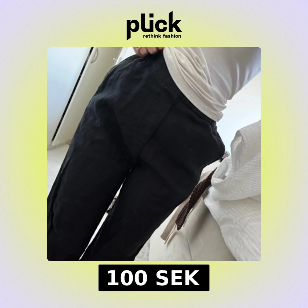 Svarta linnebyxor från Lindex, modell Bella. Byxorna har rak passform med elastisk midja och är tillverkade i svalt linne. Perfekta för en chill och stilren look, passar till både sneakers och sandaler.