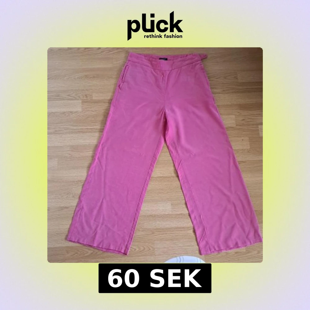 Snygga rosa linnebyxor från Lindex i storlek 42. Byxorna har hög midja, vida ben och stängs med dragkedja och knapp. De har fickor fram och dekorativa fickor bak. Perfekta för en chill och trendig look.💕