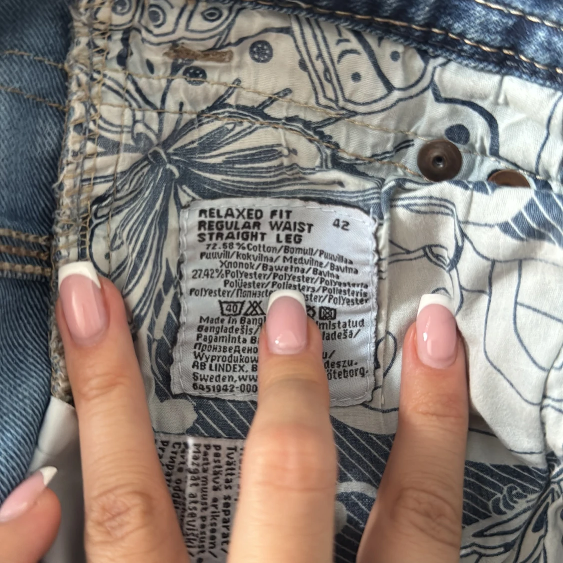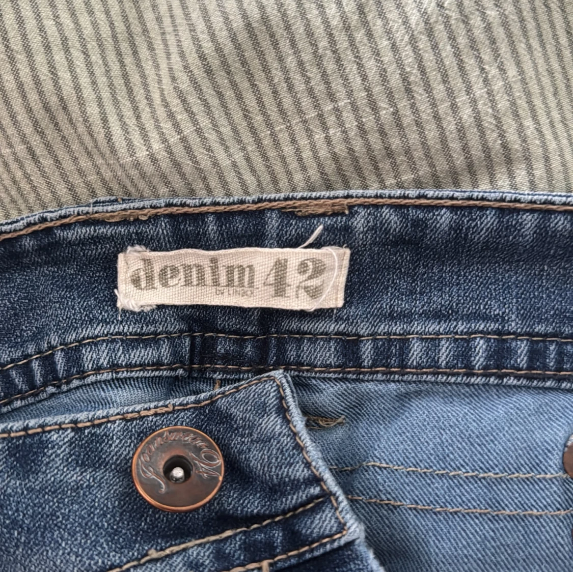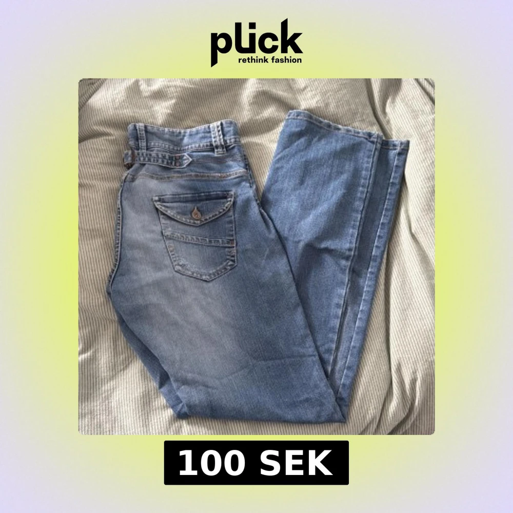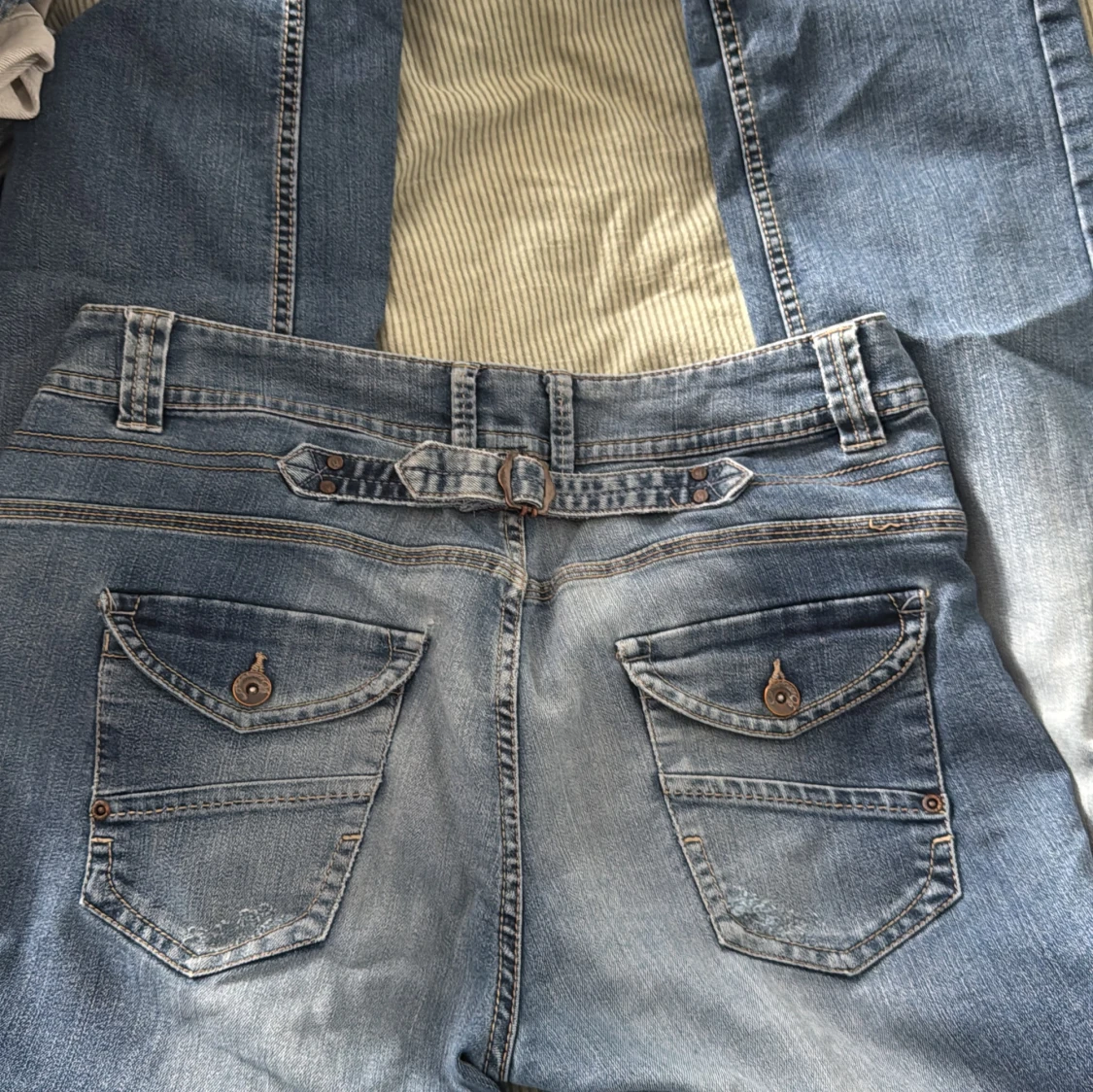 Snygga blå jeans från Lindex i rak modell med relaxed fit och regular waist. Byxorna har två bakfickor med lock och knapp, samt ett dekorativt bälte bak.