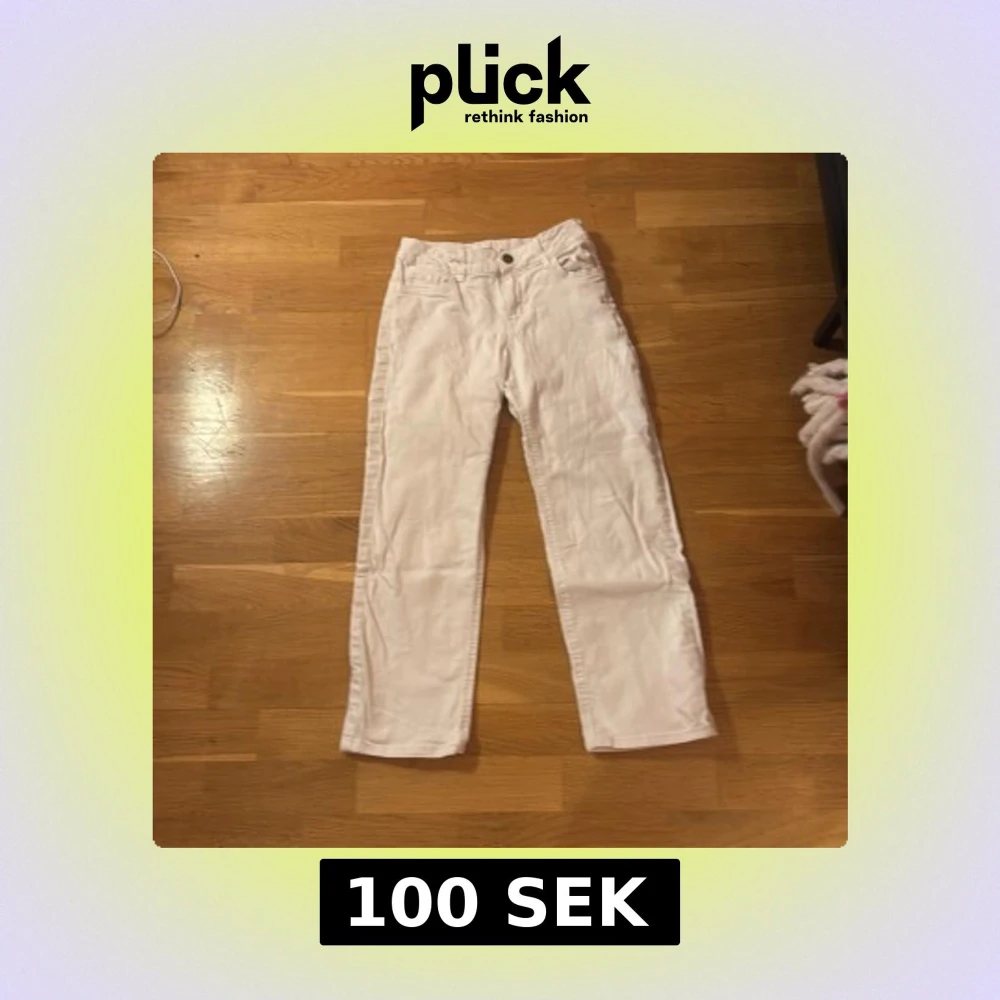 Säljer ett par vita jeansbyxor med klassisk femficksdesign . Byxorna har normal midja och stängs med knapp och dragkedja. Perfekta för dig som vill ha en clean och stilren look. Och super duper sköna💕💕❤️❤️🐳🐳🌺🌺
