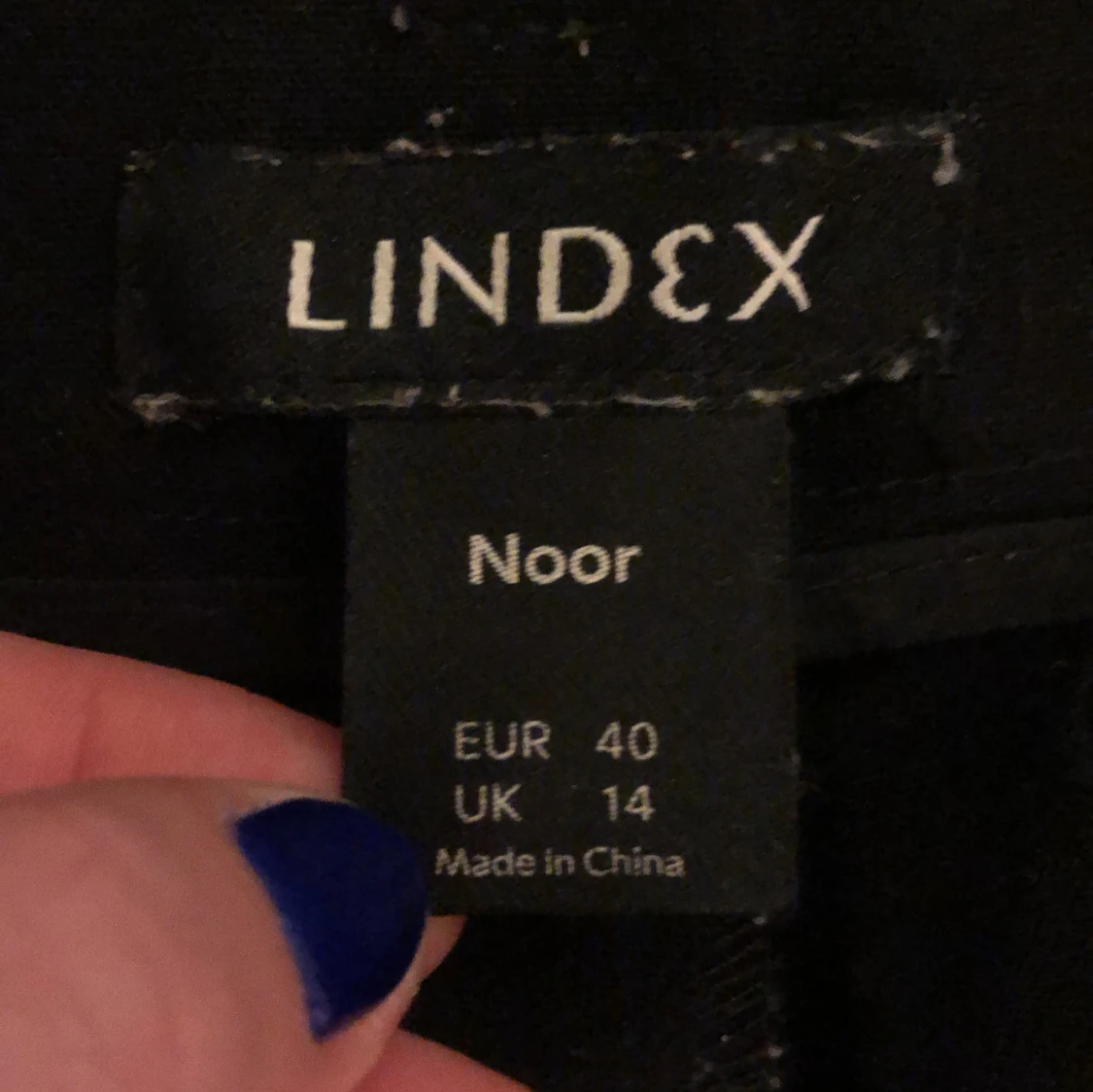 Snygga svarta kostymbyxor från Lindex i storlek EUR 40. Byxorna har en klassisk design med dragkedja och knapp framtill. Perfekta för en stilren look. Supersköna och väldigt snygga!!😍😍