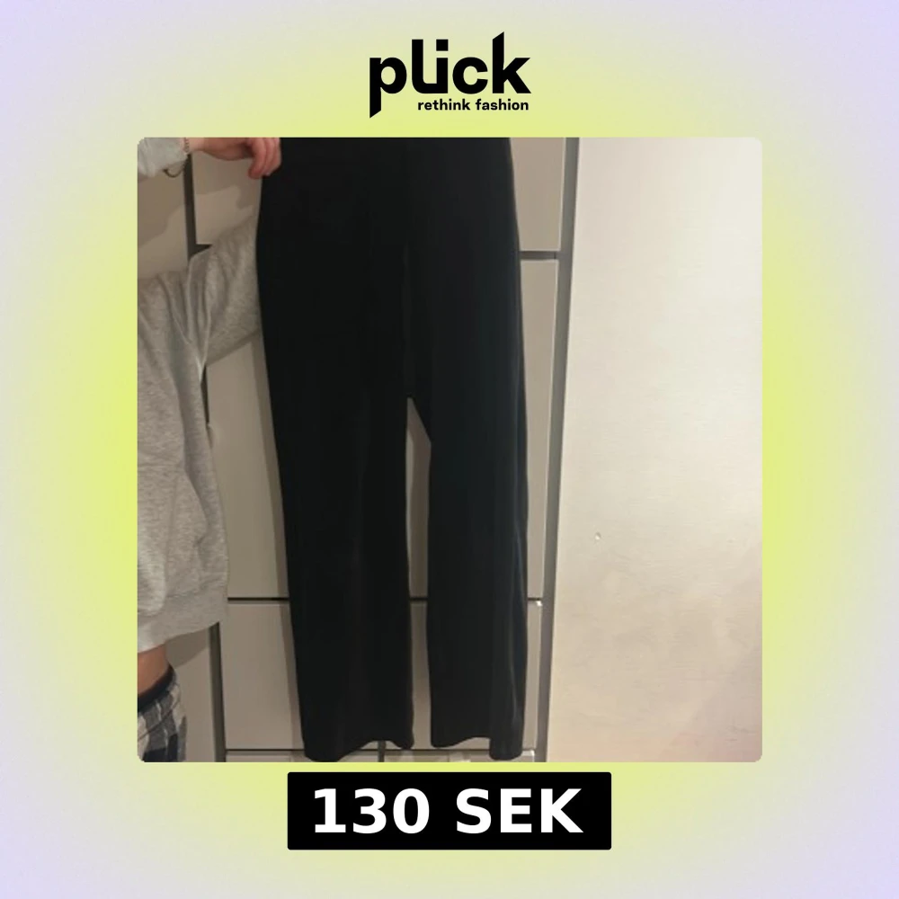 Mysiga svarta byxor i velour från Lindex med normal passform och raka ben. Byxorna har snörning i midjan för extra komfort och stil. Perfekta för en avslappnad look.