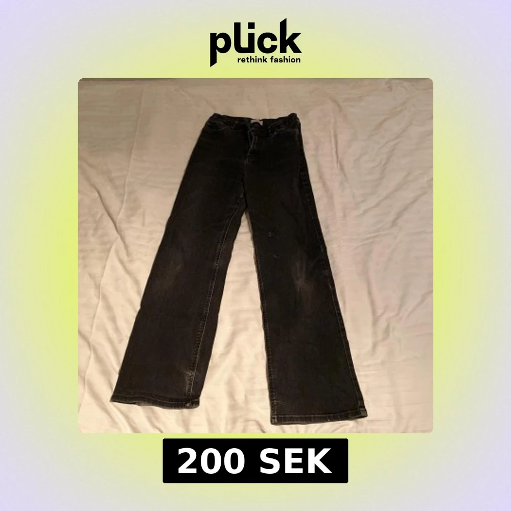 Svarta jeansbyxor från Lindex med raka ben och klassisk femficksdesign. Byxorna har normal passform och är tillverkade i ett slitstarkt jeanstyg. Perfekta för dig som gillar en enkel och tidlös stil. Dessa byxor har två små hål vid vänstra knät men märks inte av!