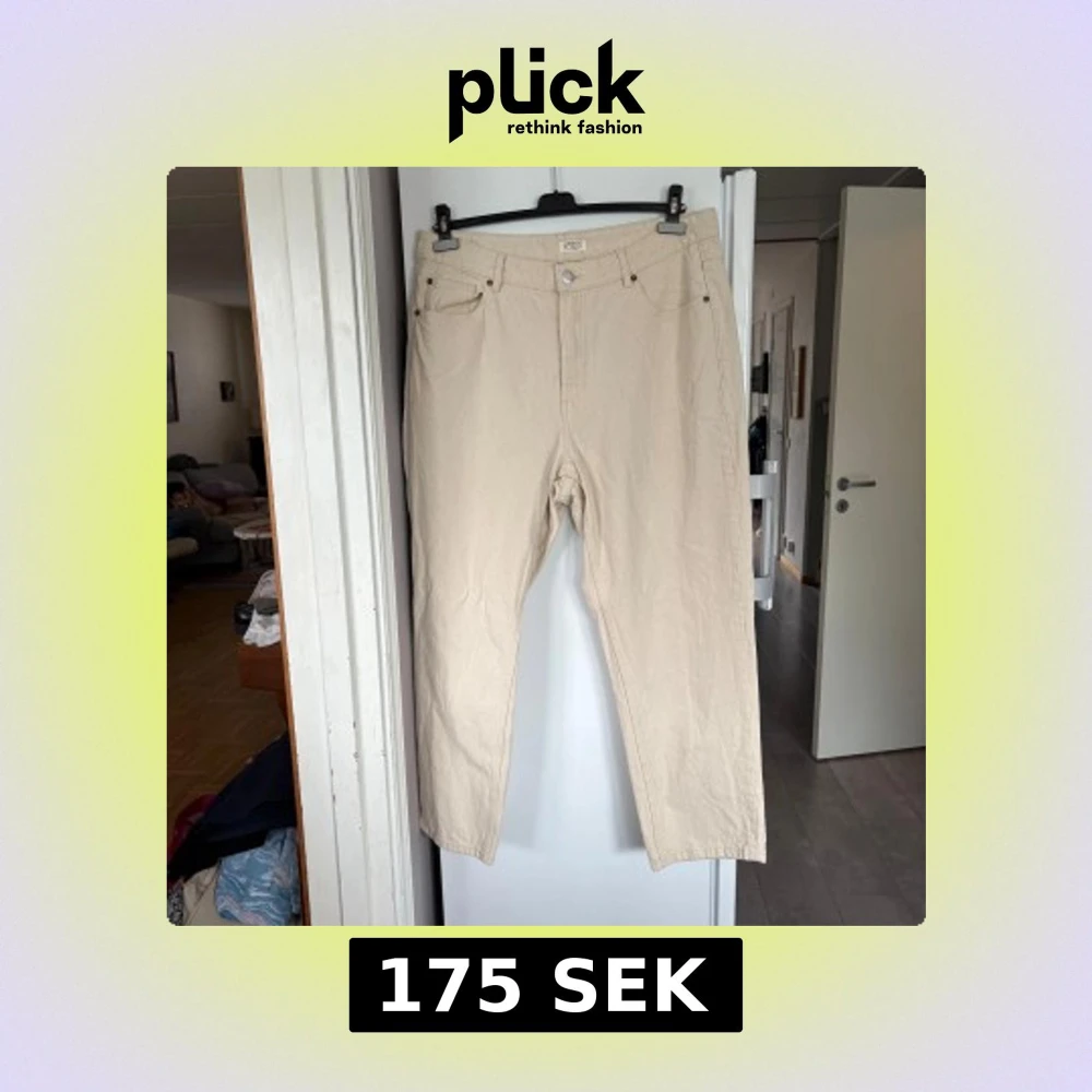 Snygga beige jeansbyxor från Lindex Betty med klassisk femficksdesign och raka ben. Byxorna har bälteshällor, knapp och dragkedja framtill. Tillverkade i ett mjukt bomullstyg som känns skönt mot huden. Perfekta för en clean och stilren look.