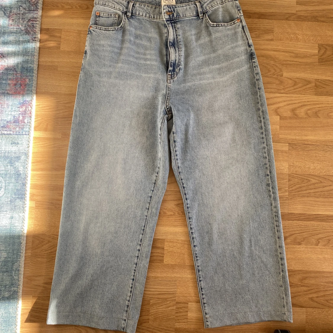 säljer ett par ljusblåa jeans från Lindex, använda ett par gånger 💗 de är i storlek 48 men har blivit uppsydda så de är lite kortare! ☺️