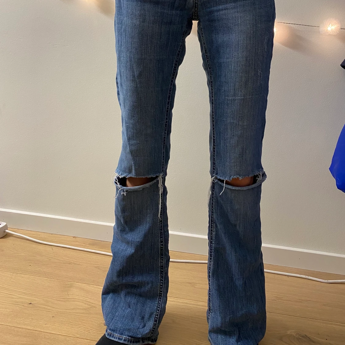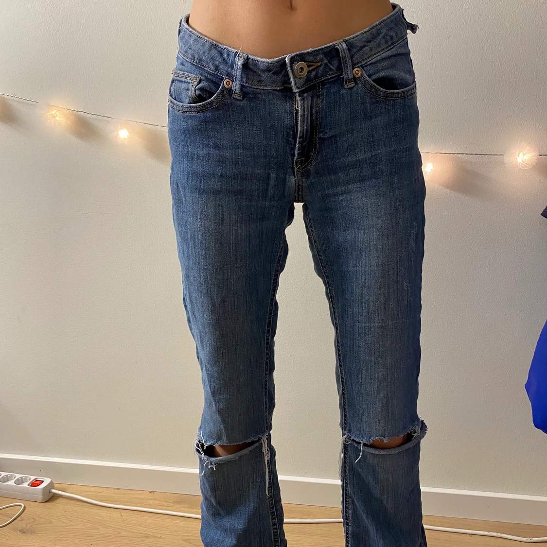 Så snygga lågmidjade jeans från Lindex med hål på knäna😁 så skön passform men väl använda!