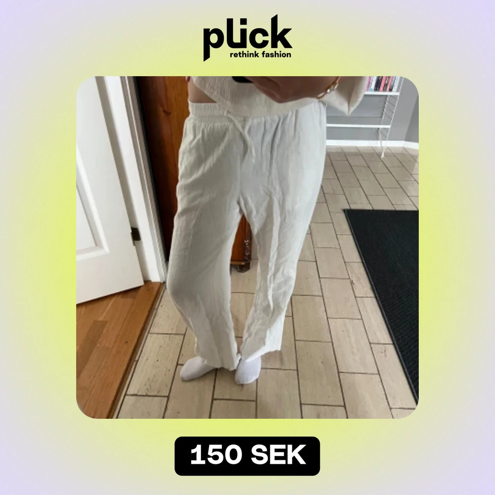 Linnebyxor från Lindex. Köpta i somras men har nu blivit för korta så säljer de av den anledningen. Inga tecken på användning. Mått: Innerbensmåttet: 65 cm Ytterbensmåttet: 88 cm Midjemåttet rakt över: 33 cm töjbara till 40 cm.