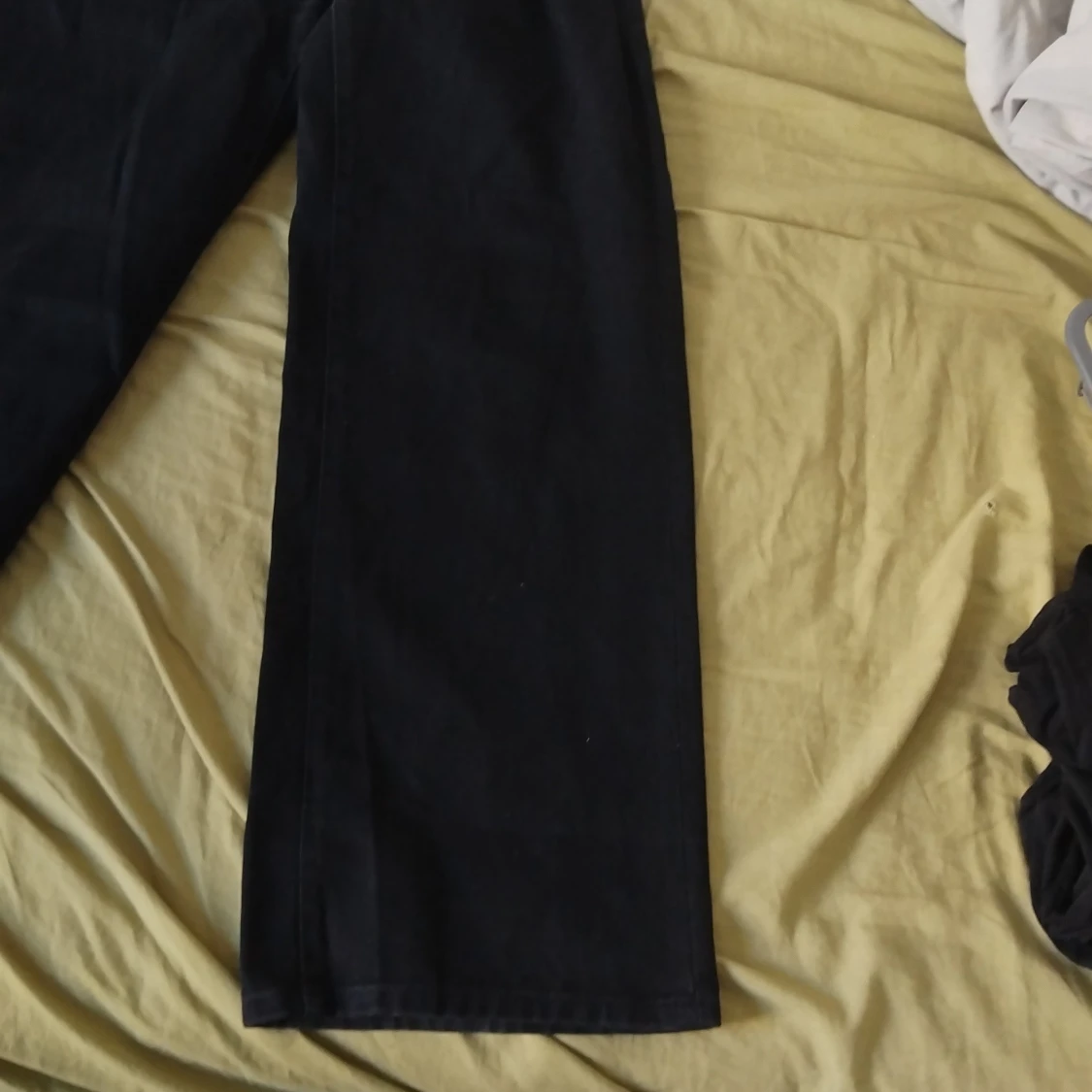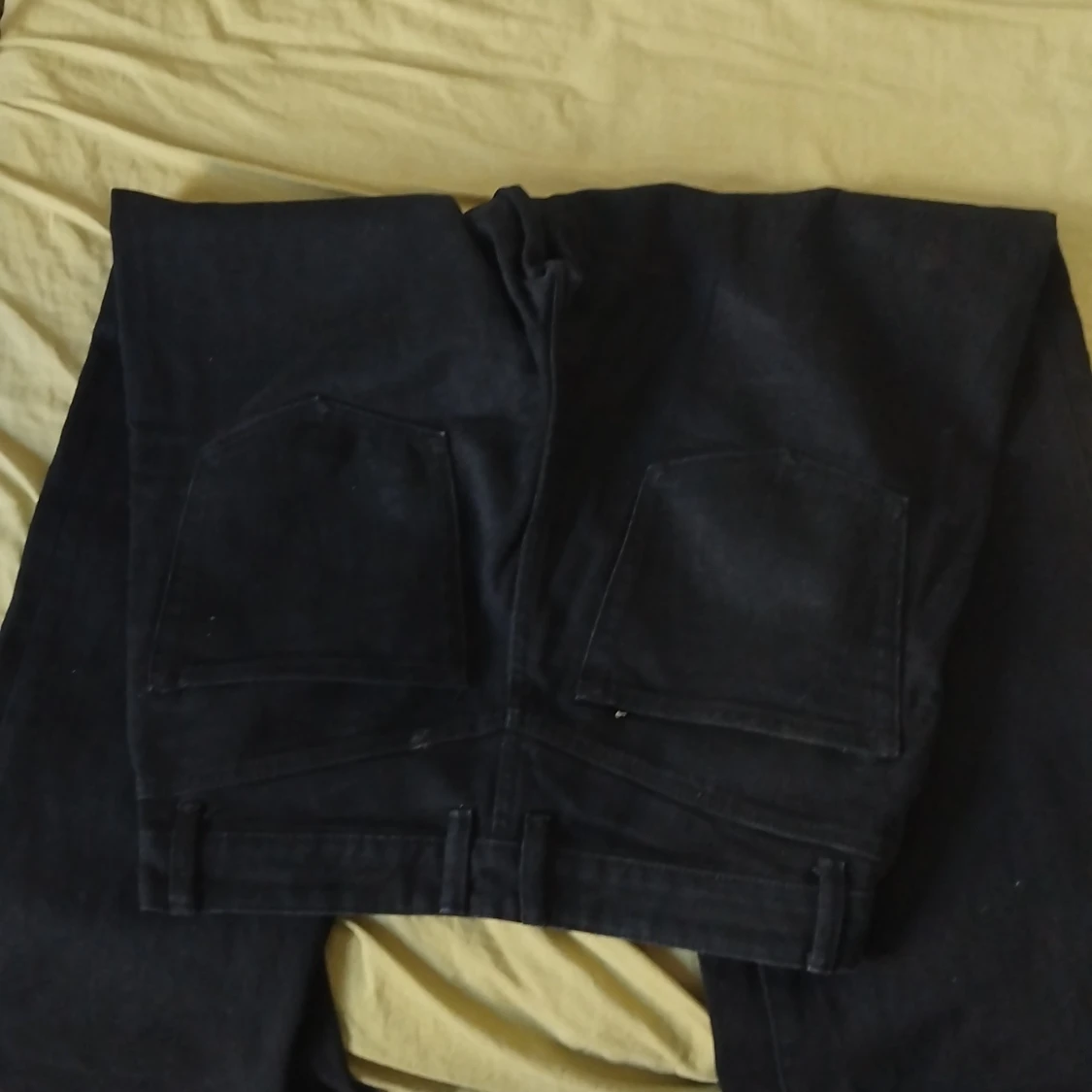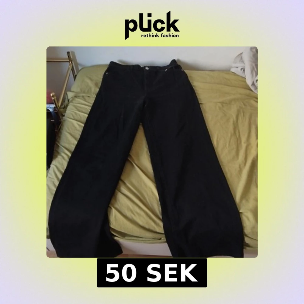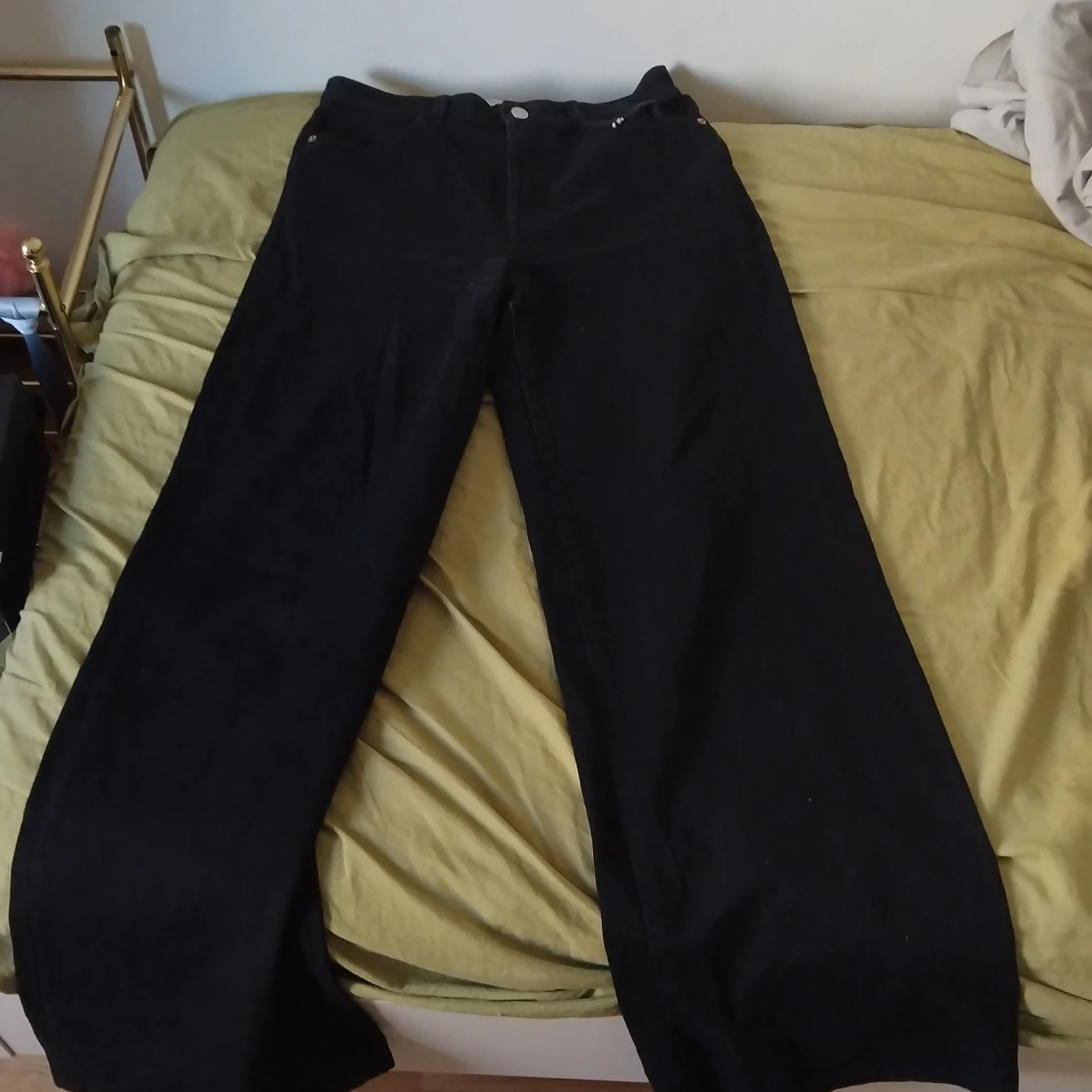 Säljer ett par svarta manchesterbyxor från Lindex i storlek 36. Byxorna har raka, breda ben och klassiska bakfickor. Materialet är mjuk manchester som ger en cool retrovibe. Perfekt för dig som gillar en avslappnad och trendig stil.